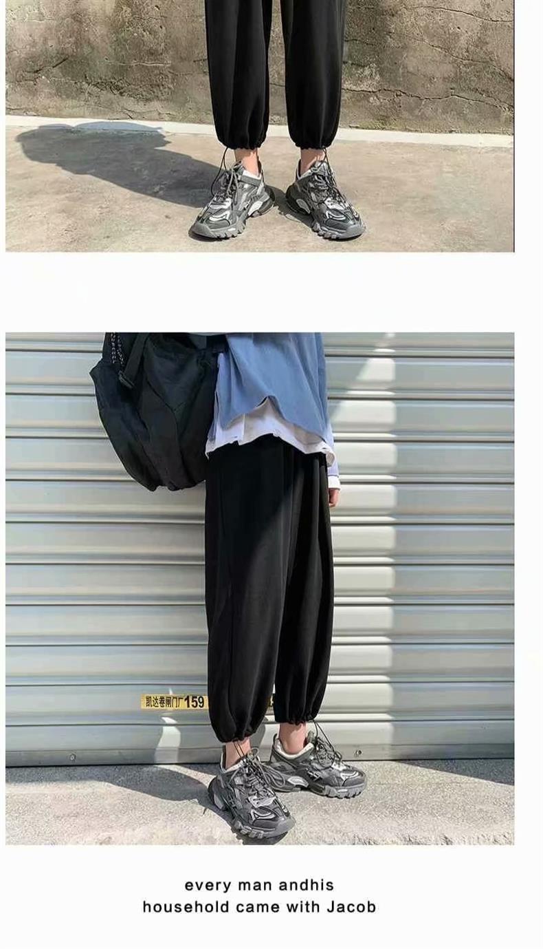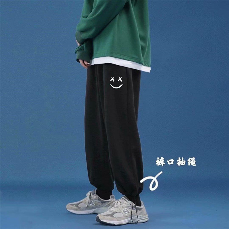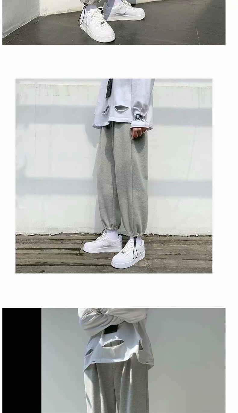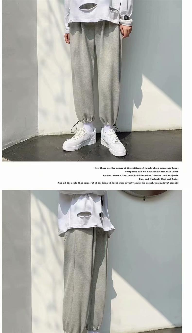Однотонные брюки для пары в гонконгском стиле с завязками на щиколотке, модные спортивные брюки, студенческие широкие брюки в Корейском стиле, свободные брюки для похудения