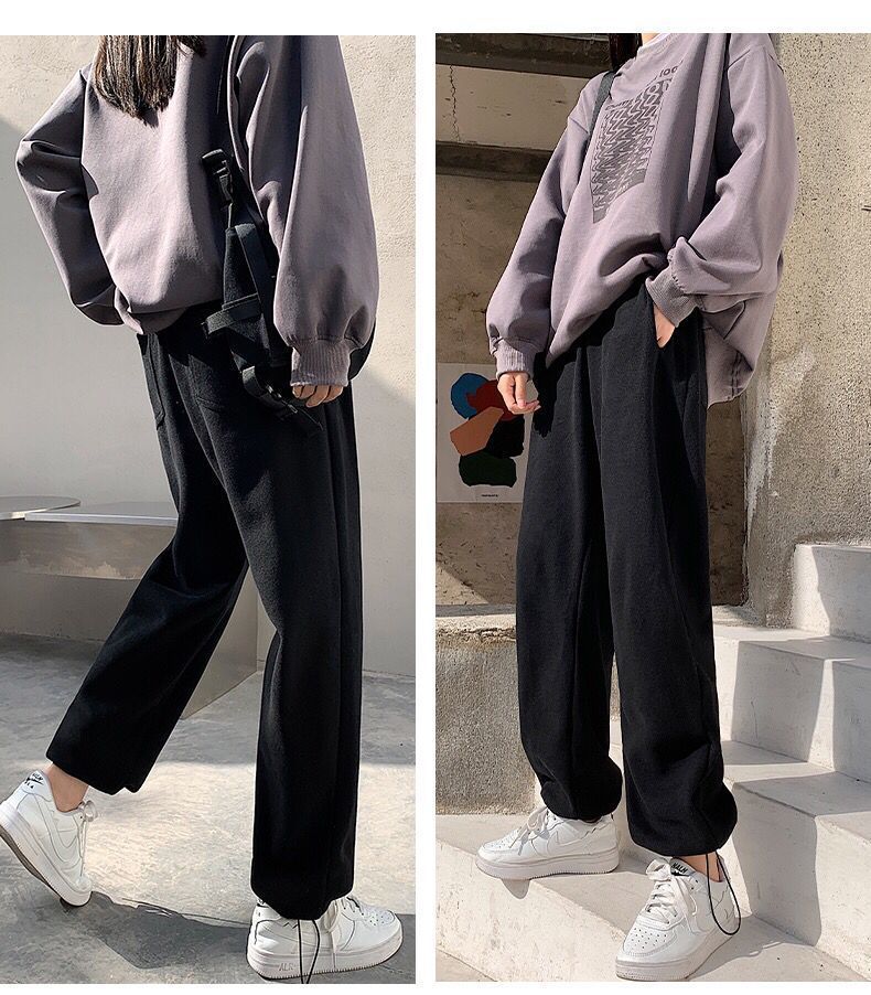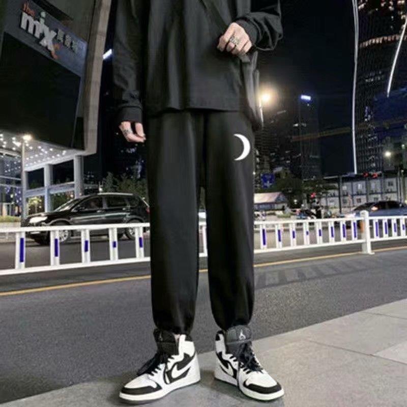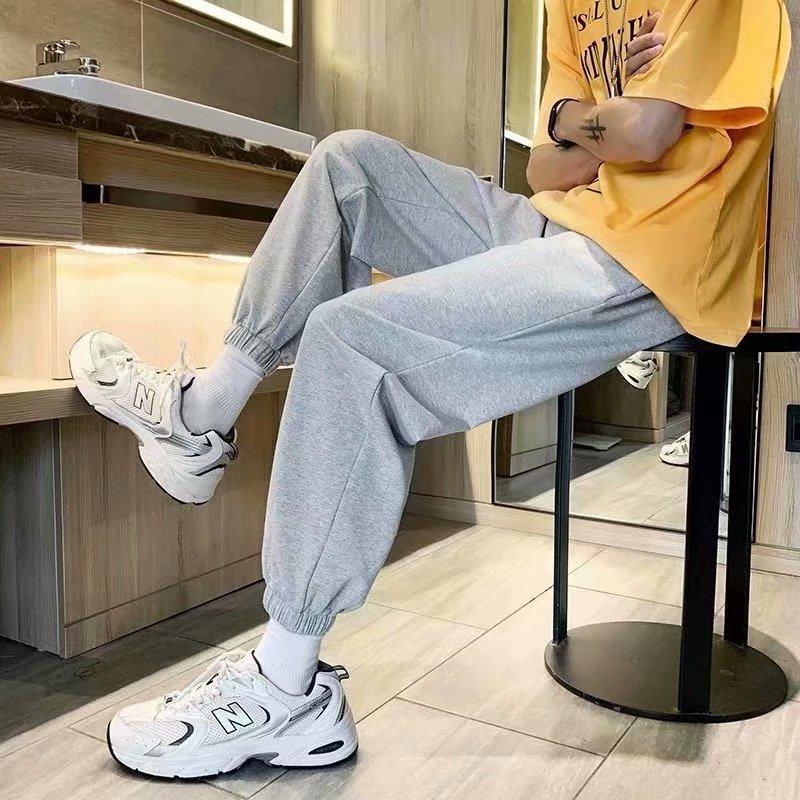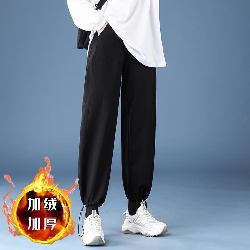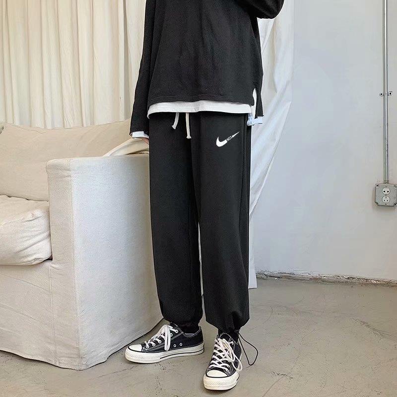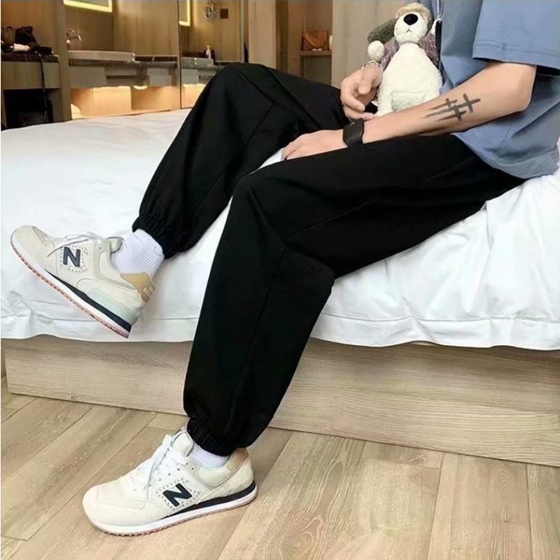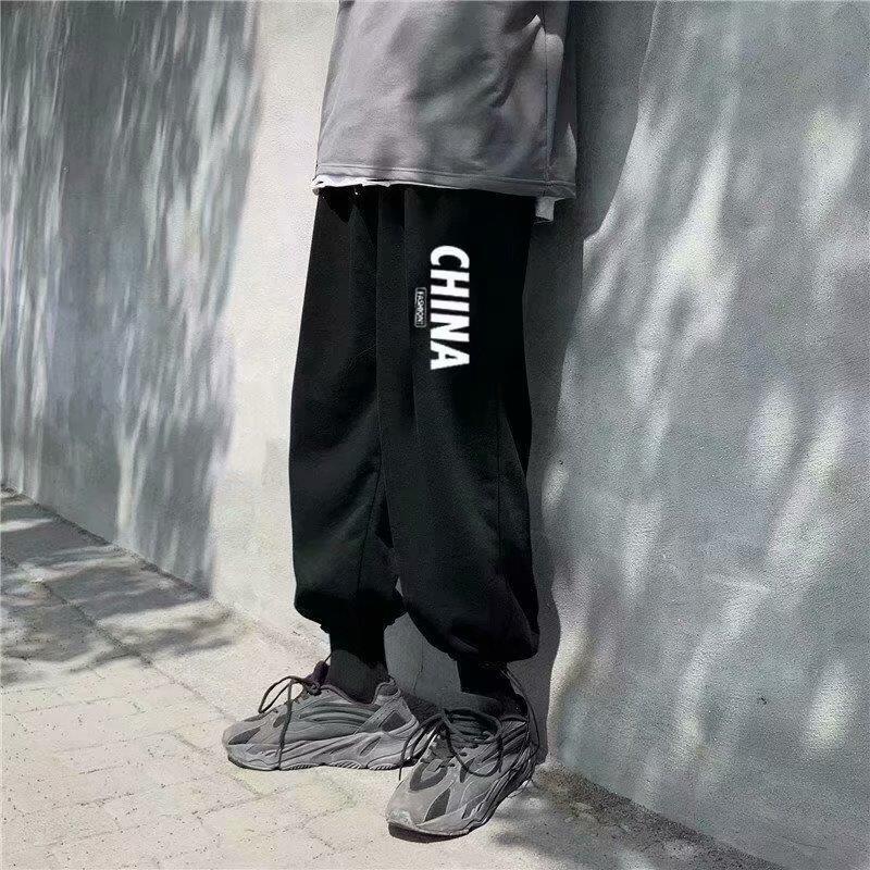 Однотонные брюки для пары в гонконгском стиле с завязками на щиколотке, модные спортивные брюки, студенческие широкие брюки в Корейском стиле, свободные брюки для похудения