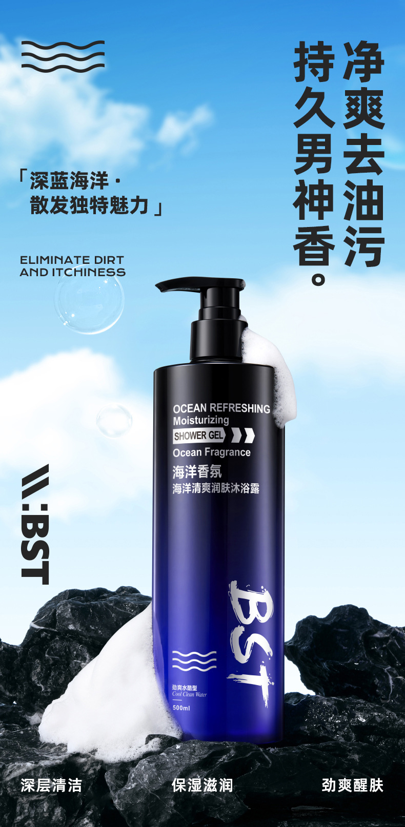 Bisutang мальчик освежающий контроль масла шампунь гель для душа комбинированный морской чистящий мужской моющий продукт оптом