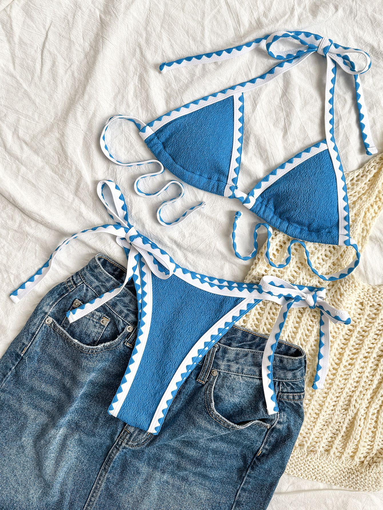 2024 плавательный речной новый комплект бикини из двух предметов модный сексуальный женский купальник на шнуровке европейские и американские экспортные трансграничные производители
