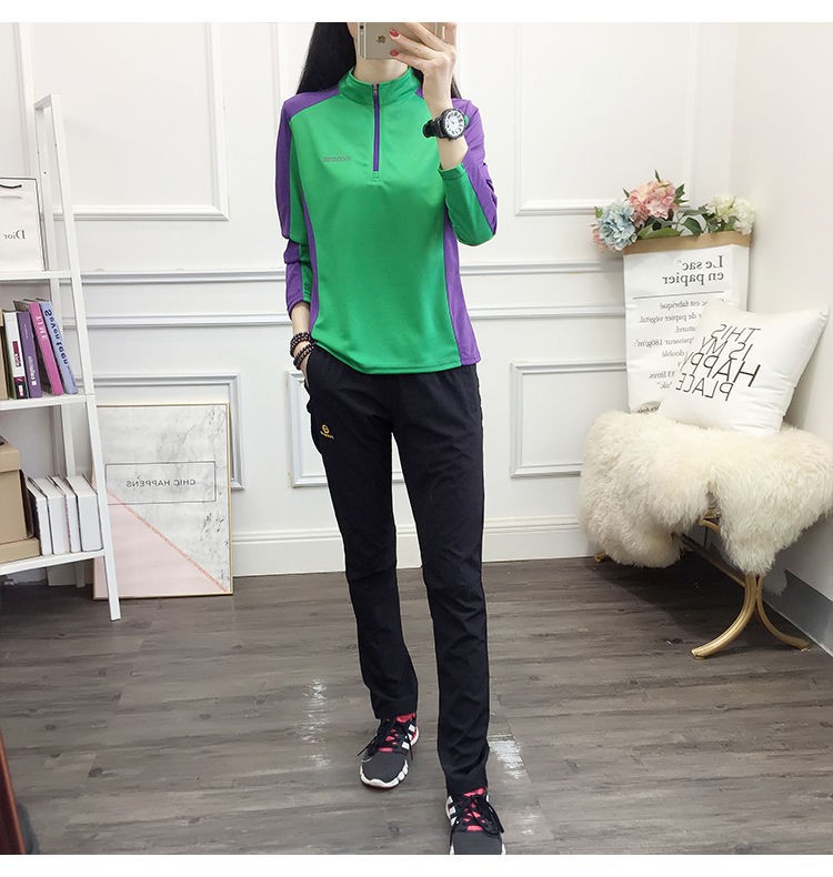 Весенний открытый быстродушащий костюм женский весенний и осенний модный воротник для бега с длинными рукавами быстрая сушка дышащая спортивная повседневная футболка