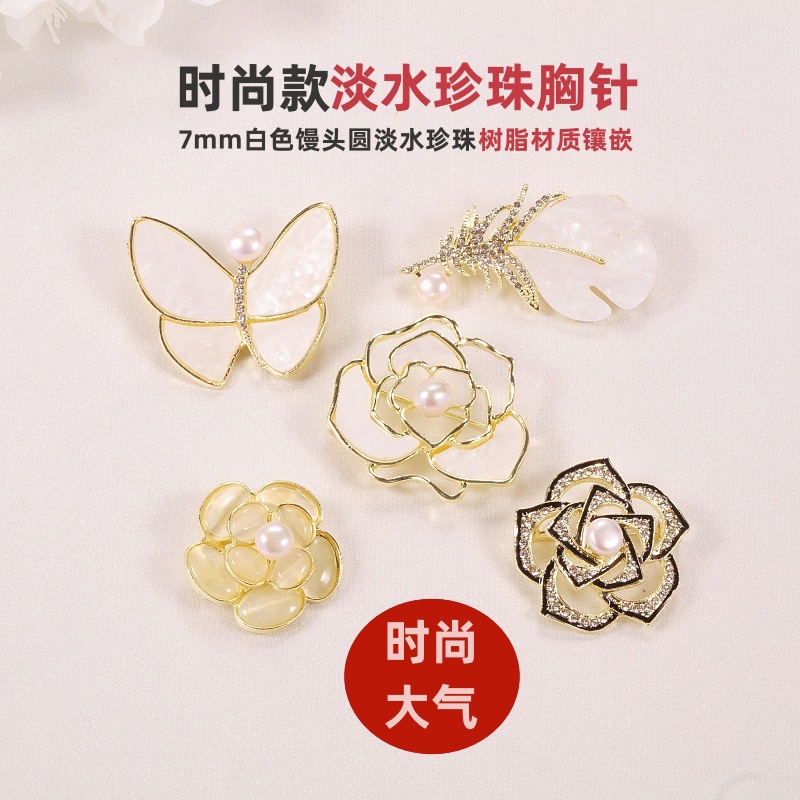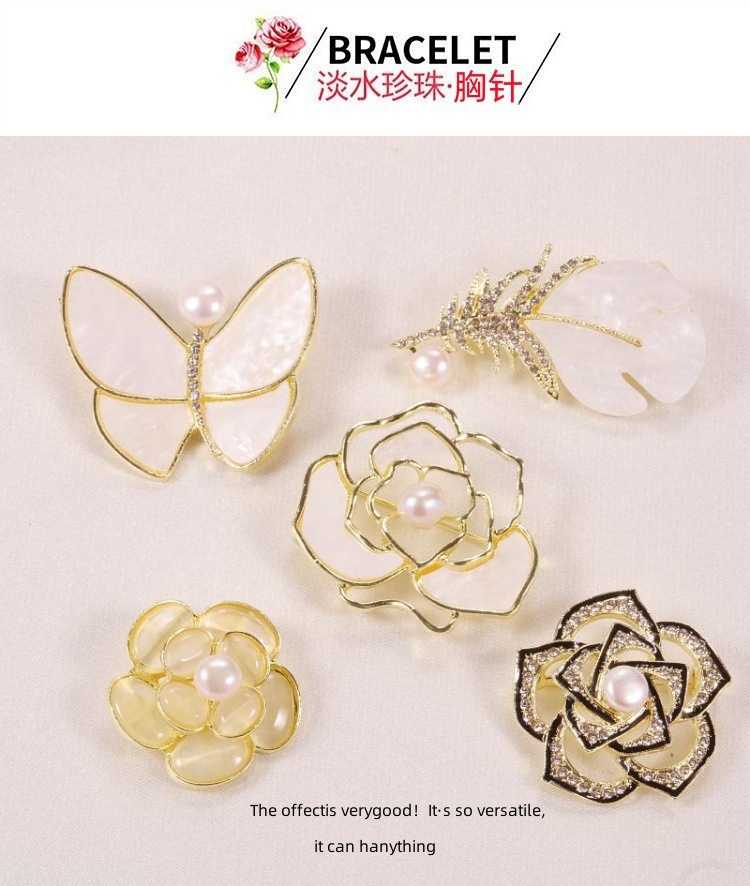 Мода Полая Камелия Бабочка Перо Смола Сплав Одежда Свинка Пресноводный жемчужный брошь Брошь Женщина