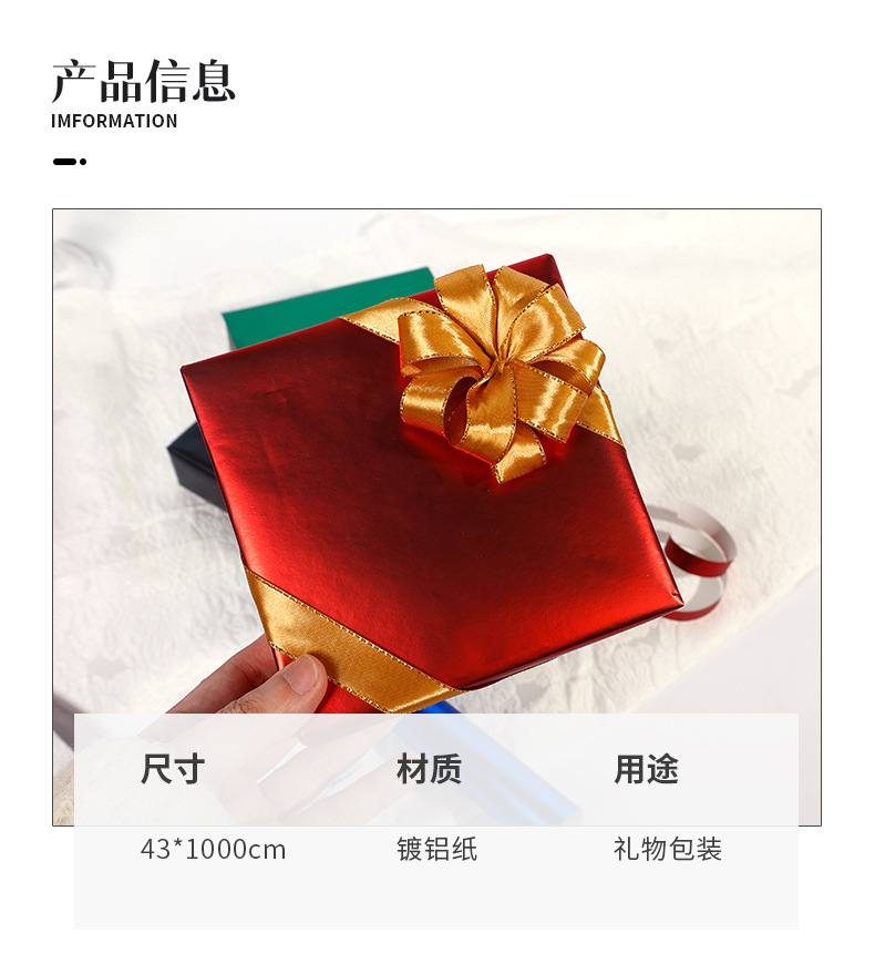 Бумага большого размера в рулонах, алюминизированная бумага, матовая металлическая однотонная подарочная упаковочная бумага, подарочная упаковка на день Святого Валентина, подарок на день рождения, матовая бумага