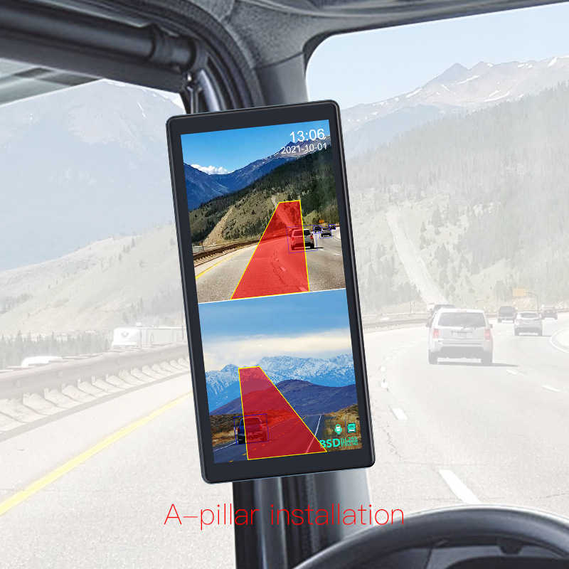 2-channel front and rear (left and right) driving recorder, 720*1600 high-definition image quality, IPS screen, touch screen, BSD warning function, adjustable warning area, display supports voice control, can broadcast warnings, and loop recording;