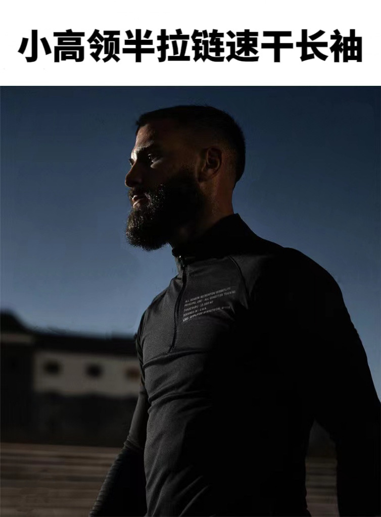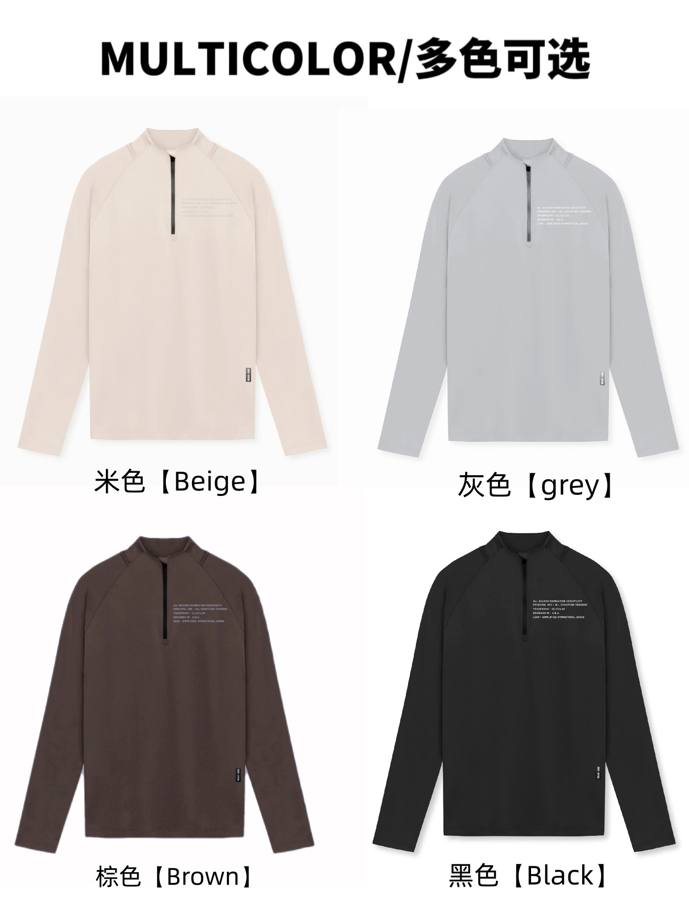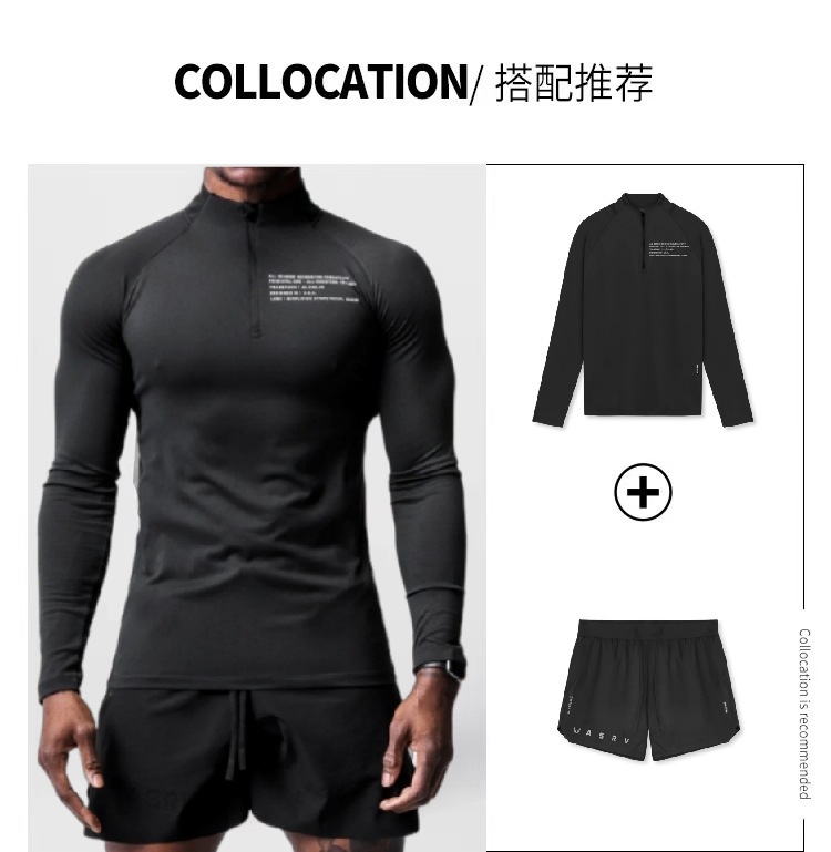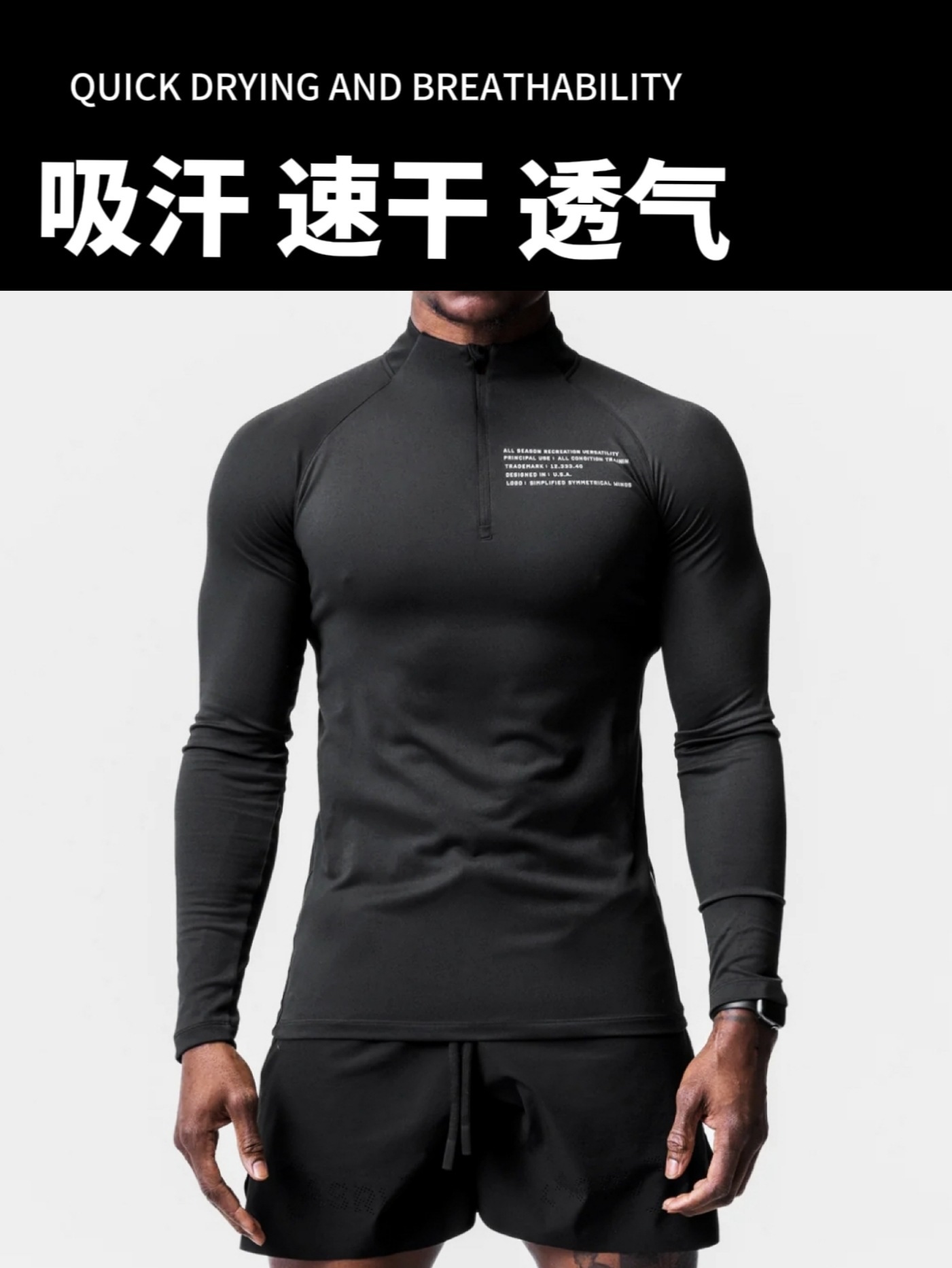 Спортивная футболка Толстовка Мужская обтягучая бархатная бег Фитнес-досуг Тренировка Длинные рукава Быстрая сухая половина застежки-молнии