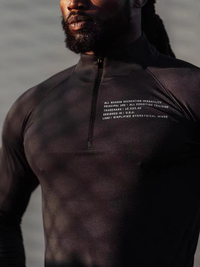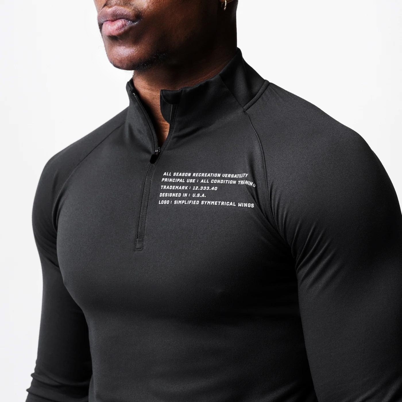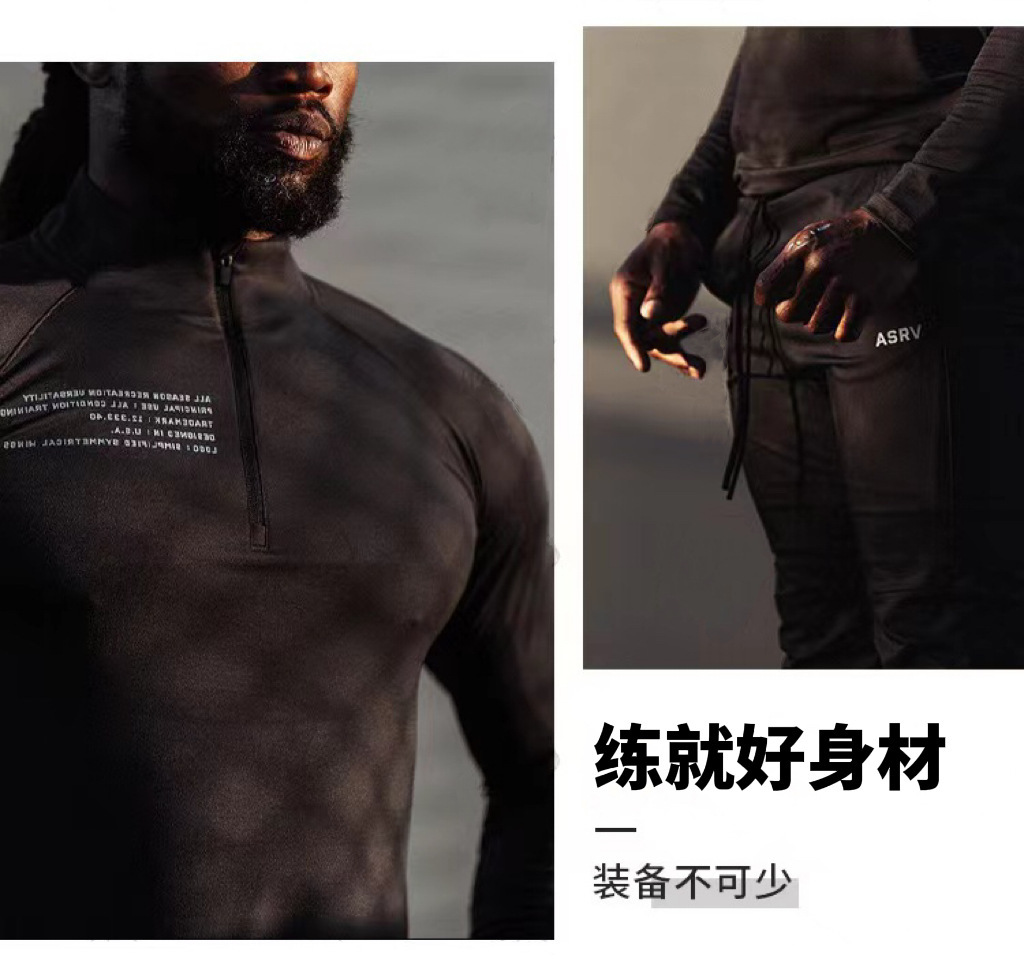 Спортивная футболка Толстовка Мужская обтягучая бархатная бег Фитнес-досуг Тренировка Длинные рукава Быстрая сухая половина застежки-молнии