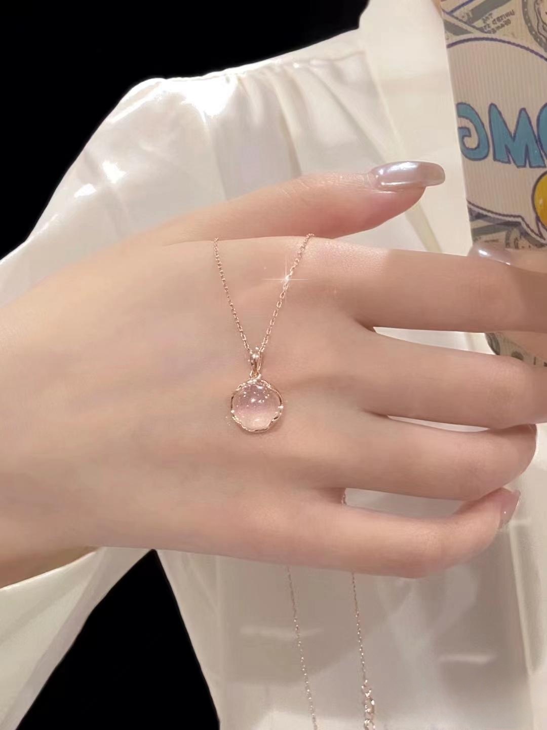 Розовое хрустальное колье, легкая роскошь, нежное и уникальное, нишевое, простое и элегантное, универсальное колье-цепочка на ключицы, привлекает внимание, цепочка-подвеска.