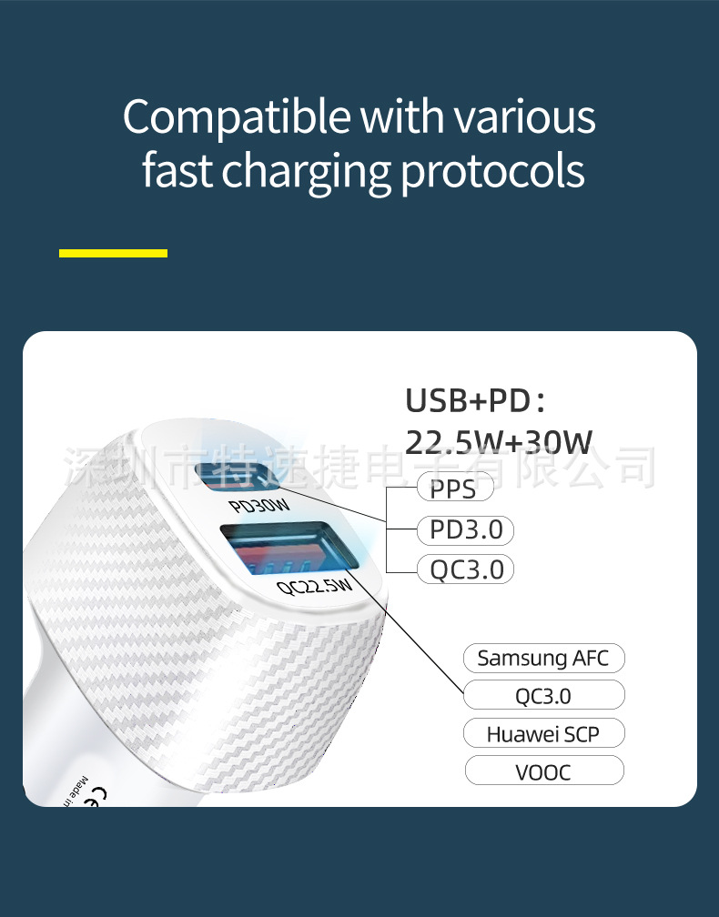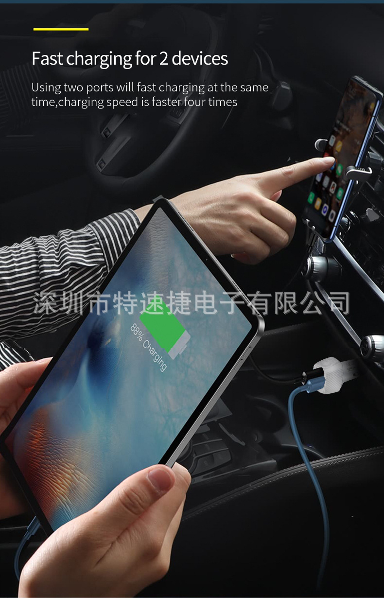 Автомобильное зарядное устройство, подходящее для сверхбыстрой зарядки Apple и Huawei.