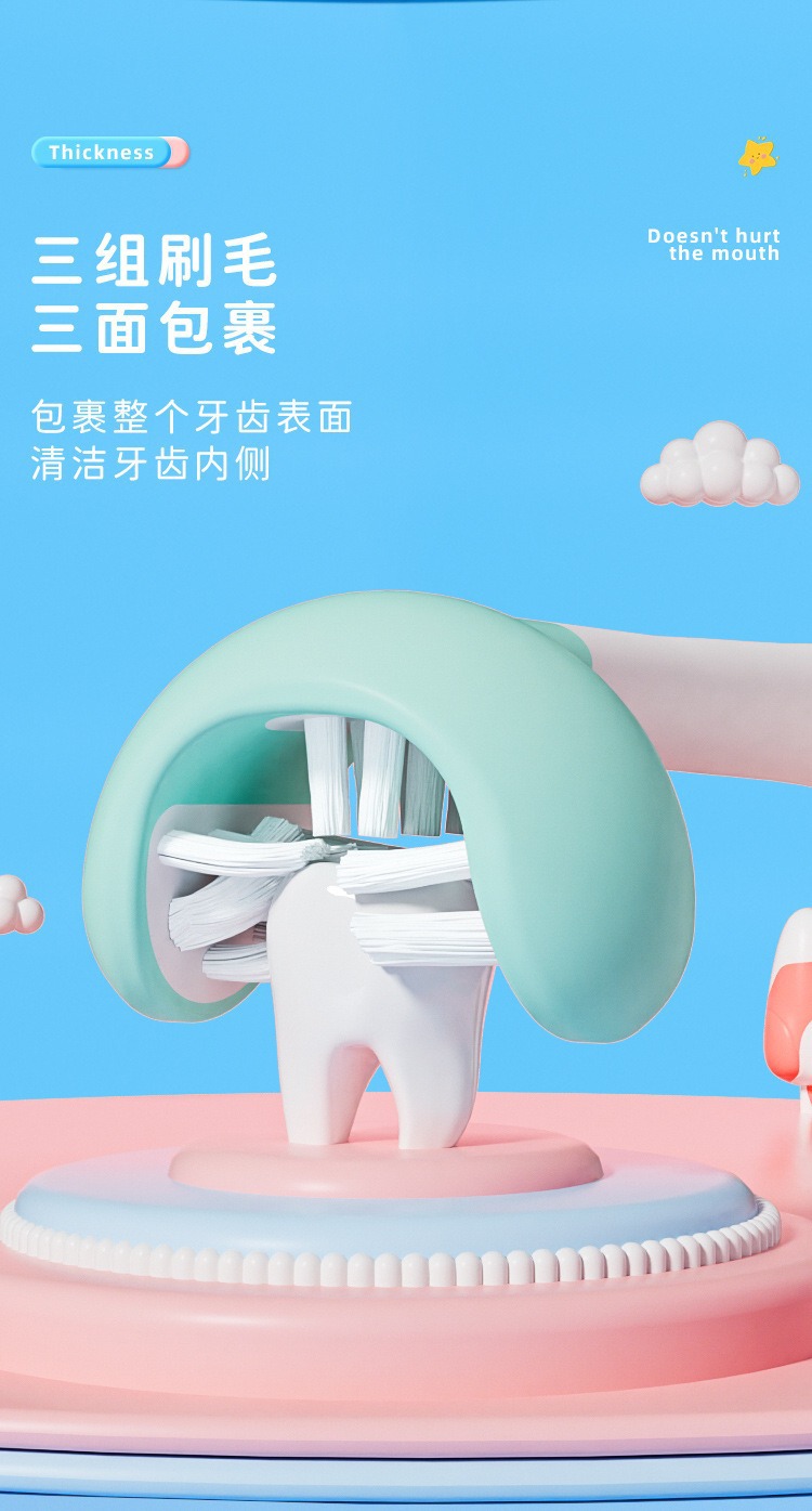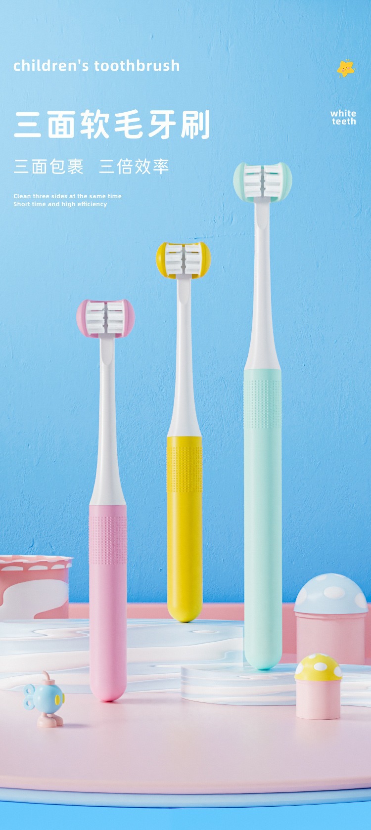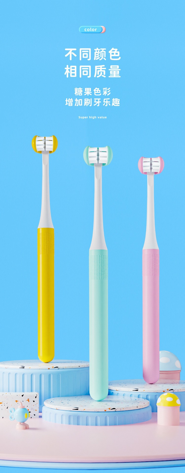 Детская зубная щетка Трехсторонняя детская мягкая волосатая детка 0-1-2-3 до 6 от одного до 12 лет детская зубная паста u-образный период замены зубов 3D