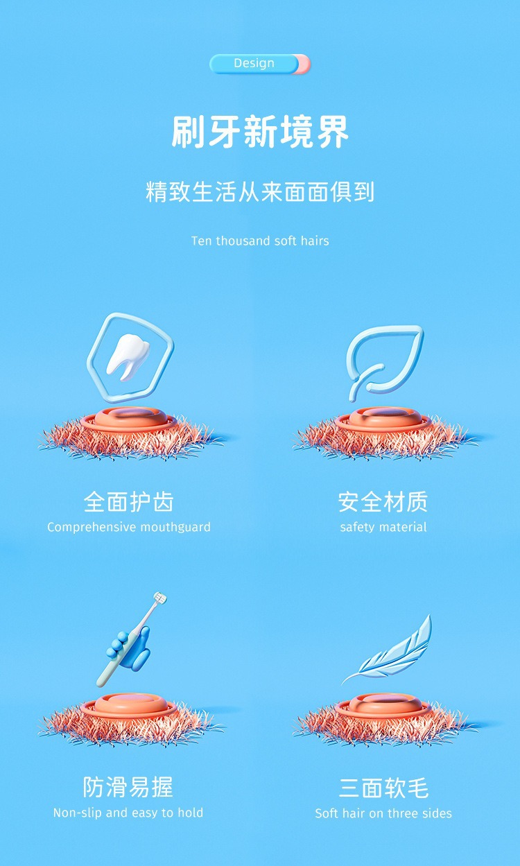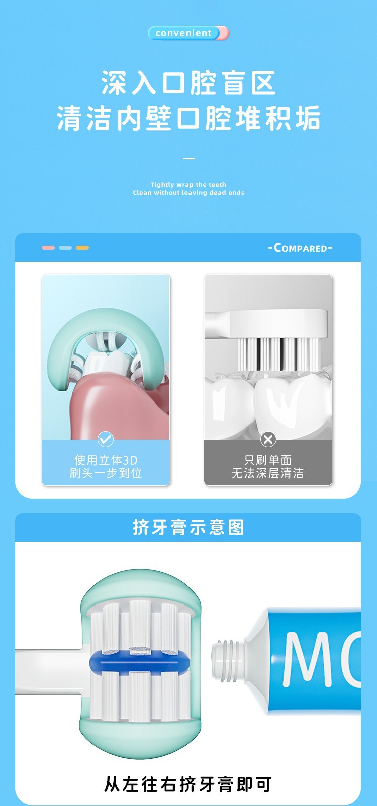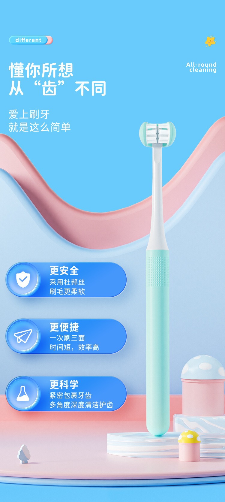 Детская зубная щетка Трехсторонняя детская мягкая волосатая детка 0-1-2-3 до 6 от одного до 12 лет детская зубная паста u-образный период замены зубов 3D