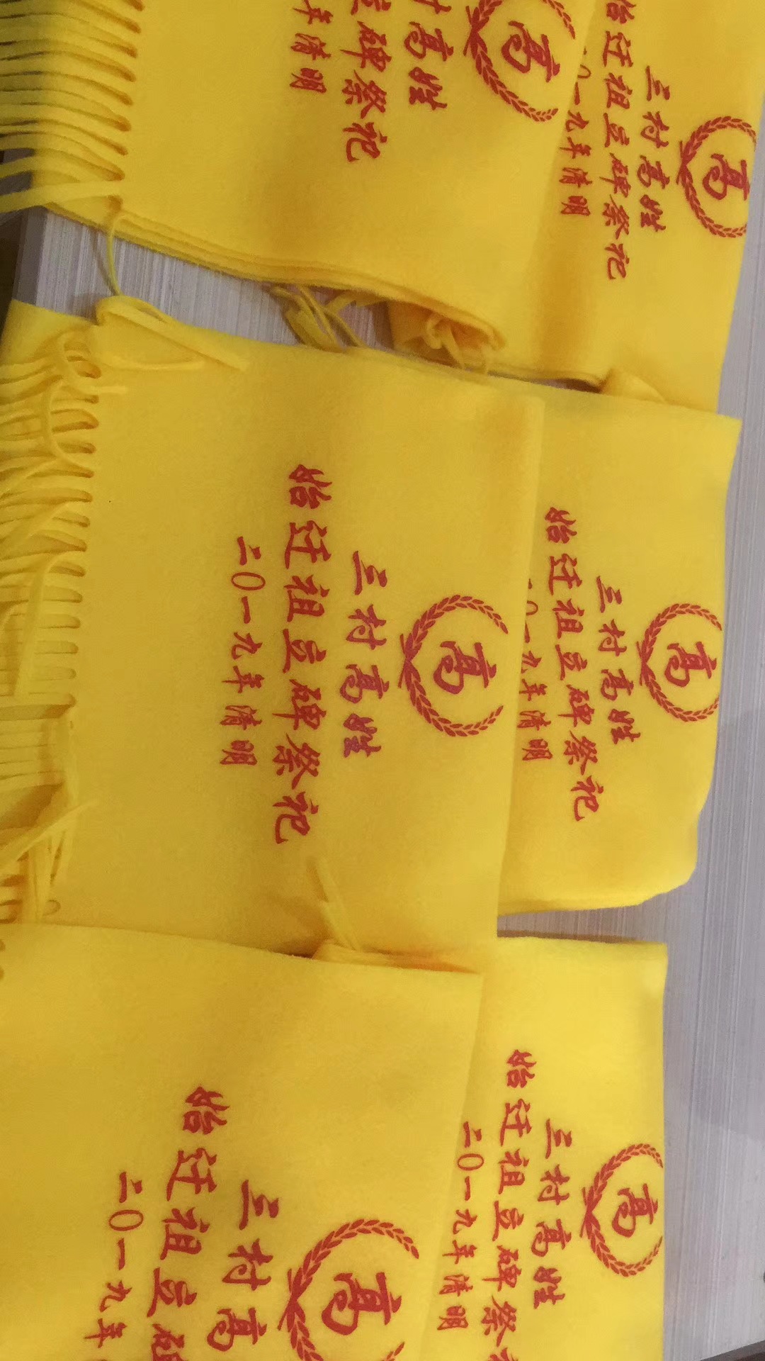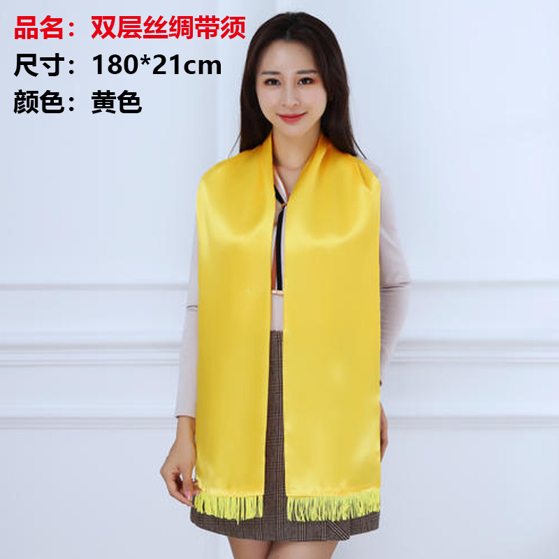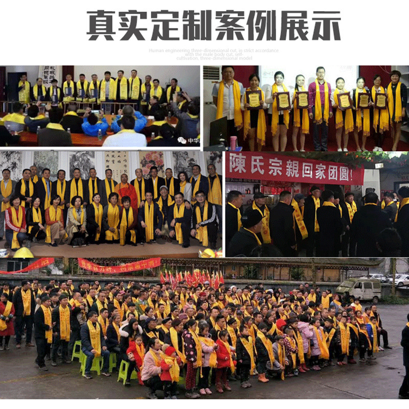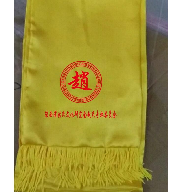 Желтый шарф с вышивкой и печатью логотипа на заказ для культурных мероприятий, храмовых ярмарок и семейных наград.