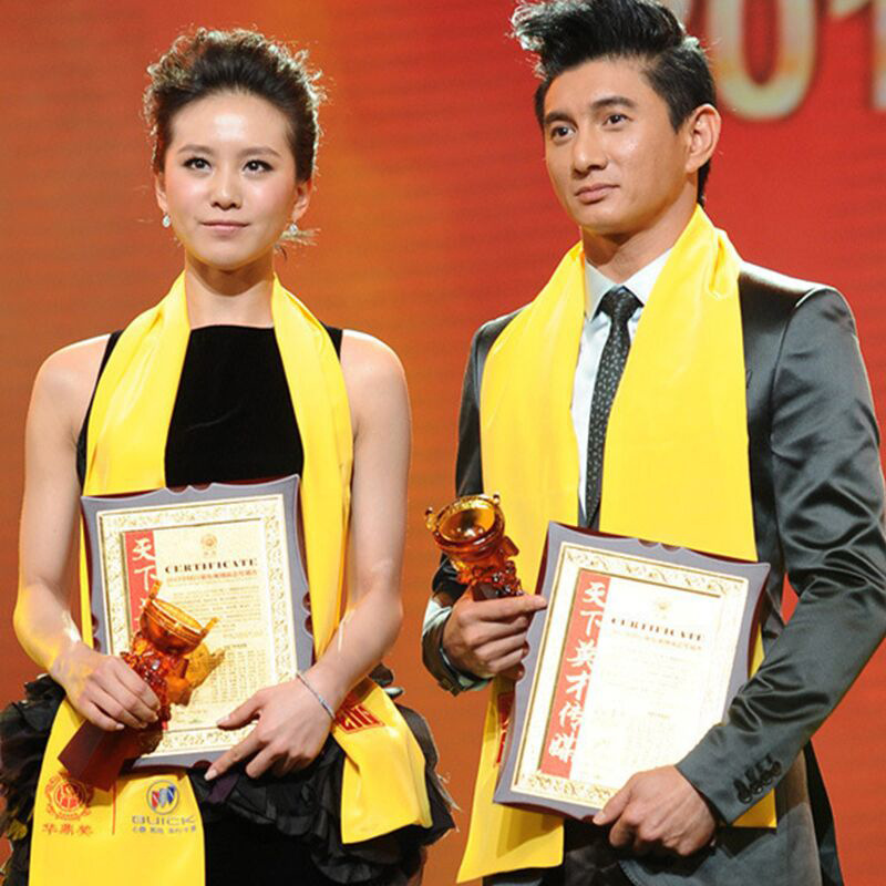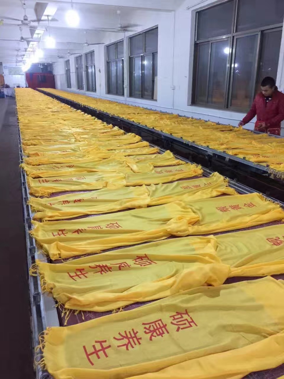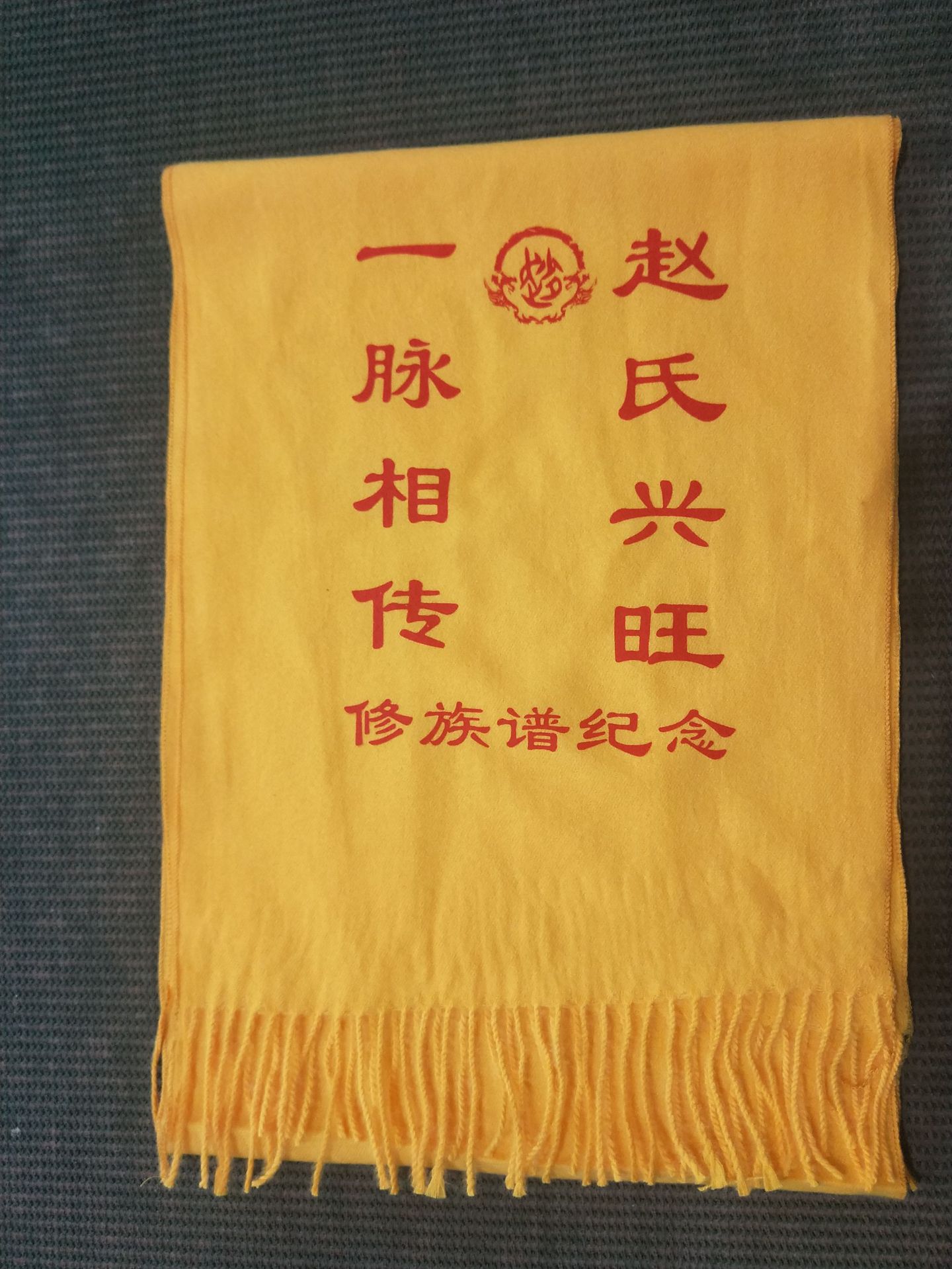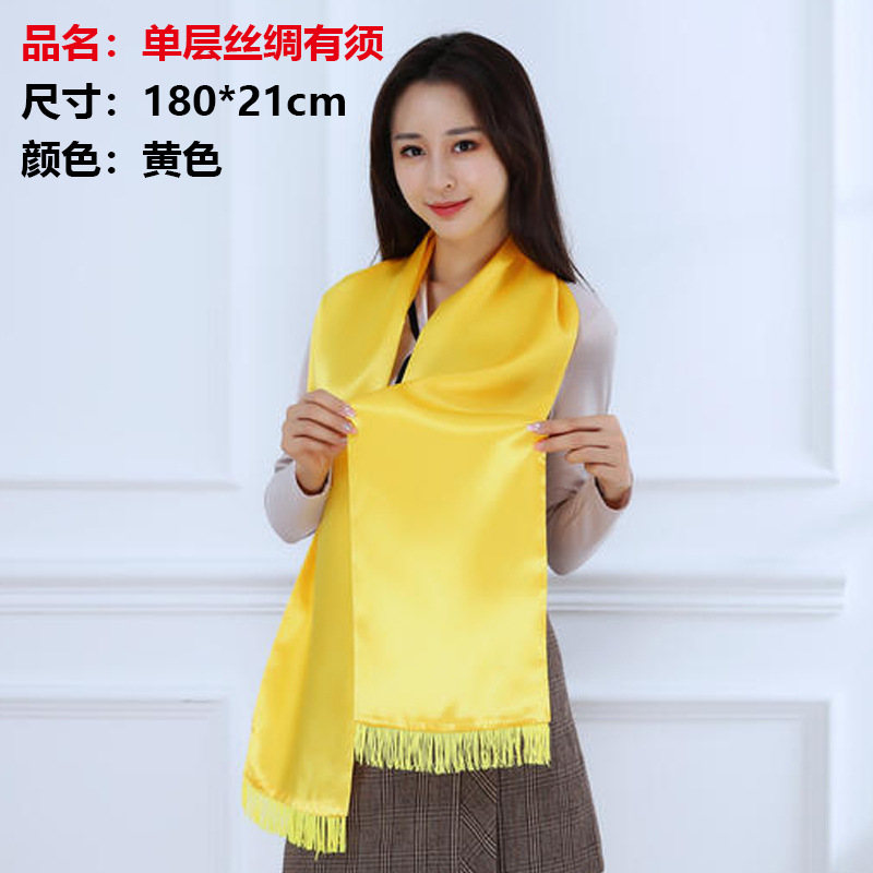 Желтый шарф с вышивкой и печатью логотипа на заказ для культурных мероприятий, храмовых ярмарок и семейных наград.