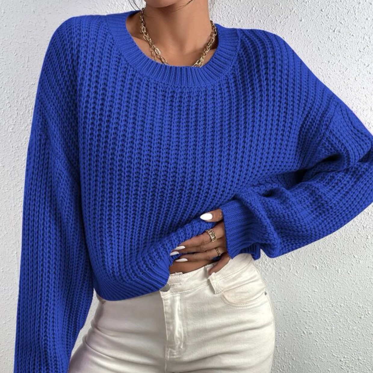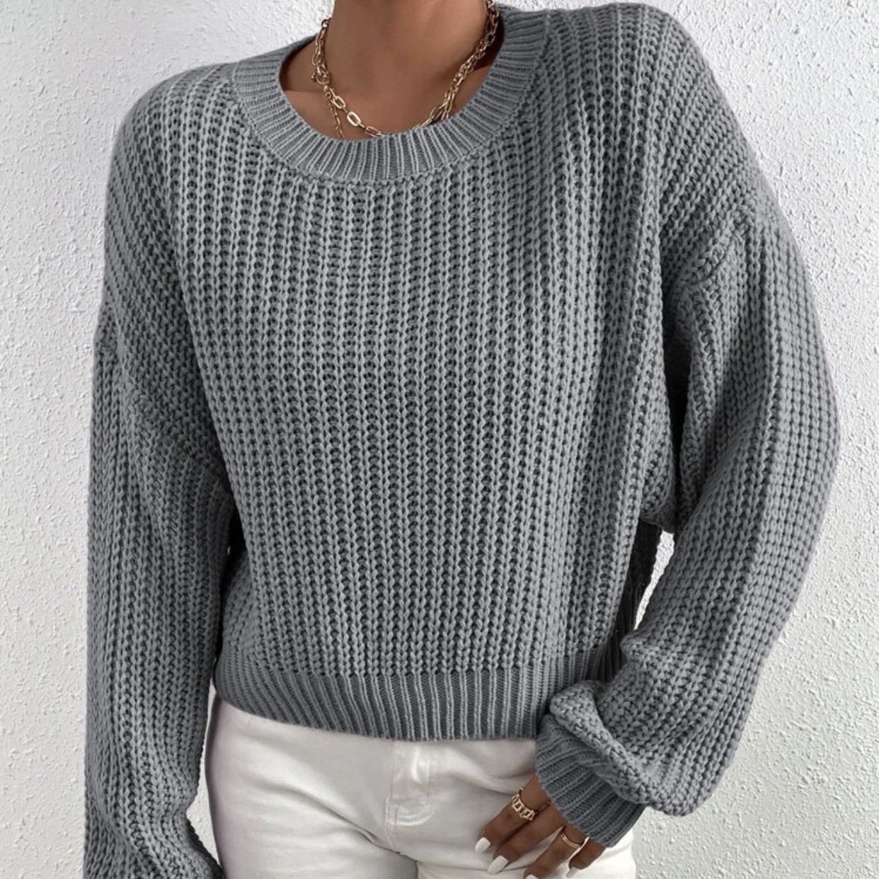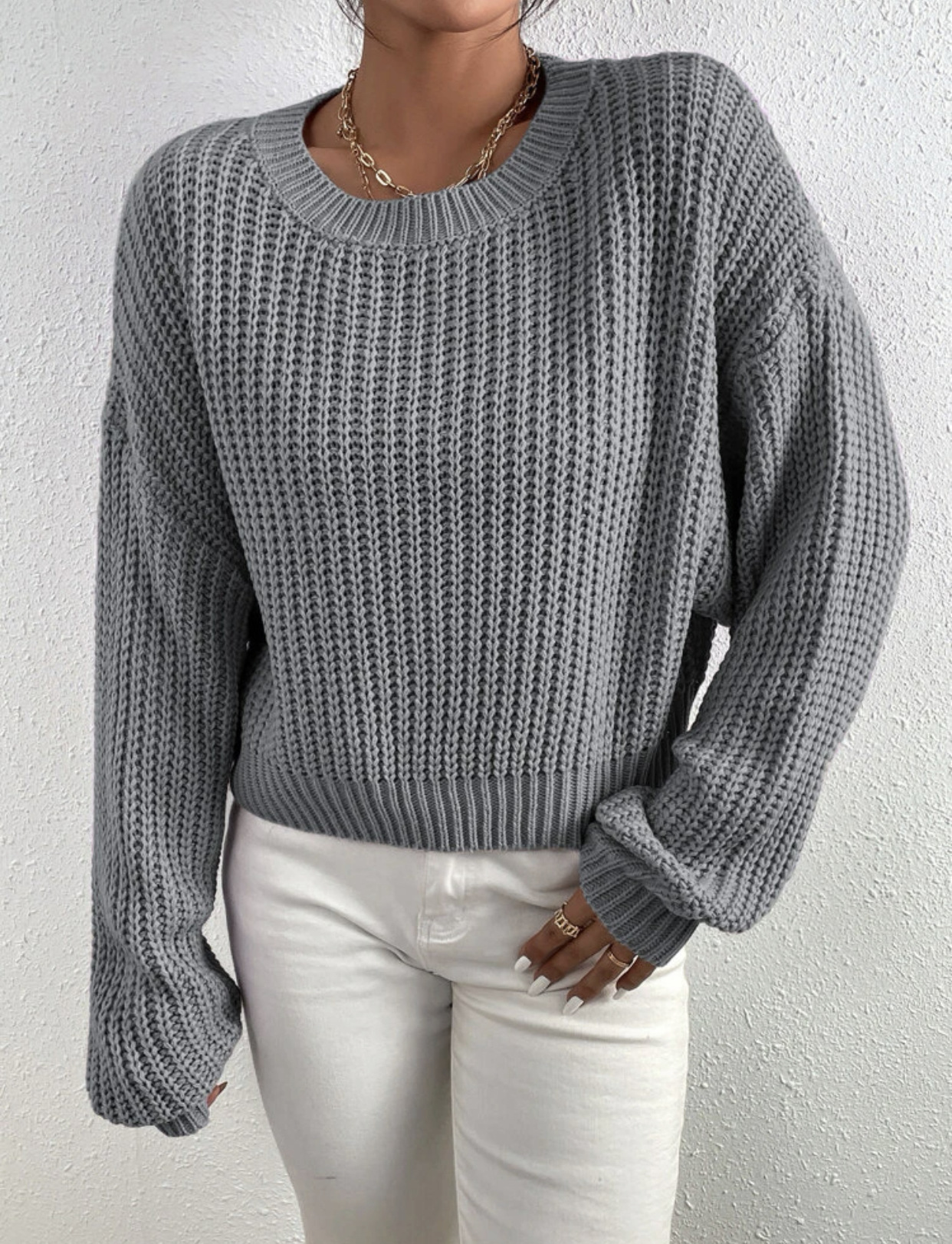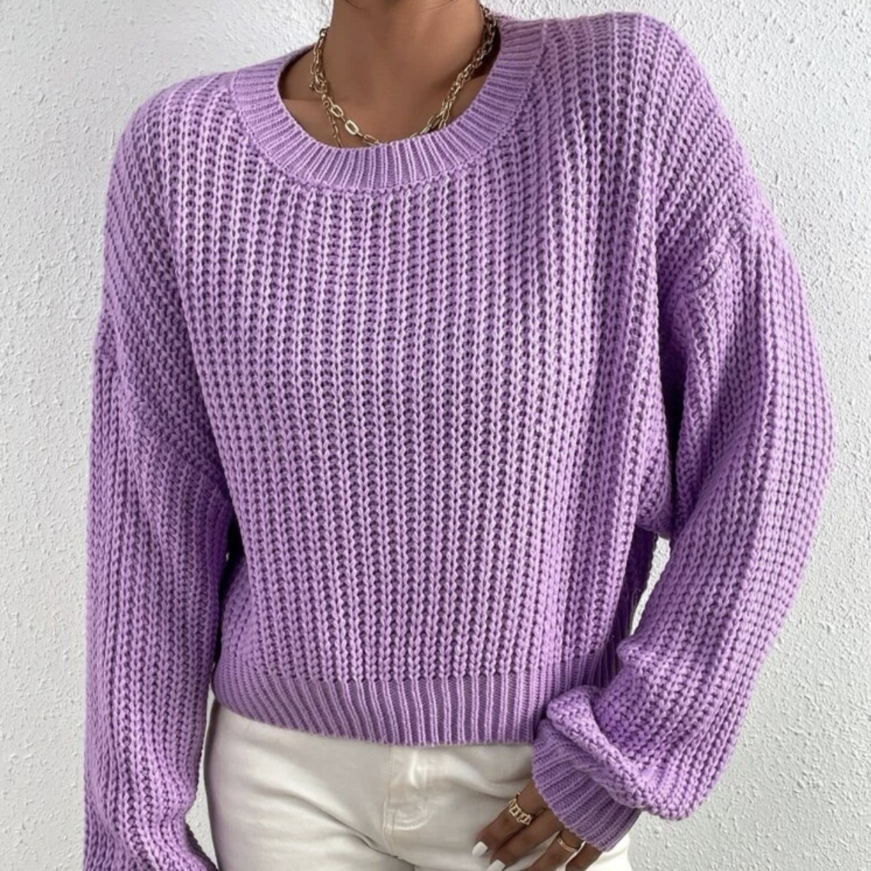 Амазонка осень-зима новый сплошной свободный свитер с круглым вырезом
