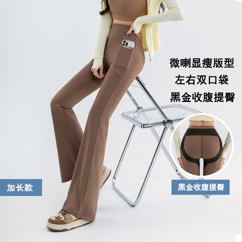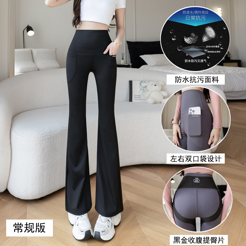 Черные расклешенные брюки «Золотой акула» для зимы, с двумя карманами, для йоги, тонкие, для весны и осени, можно носить на выход, слегка расклешенные, больших размеров, удлиненные.