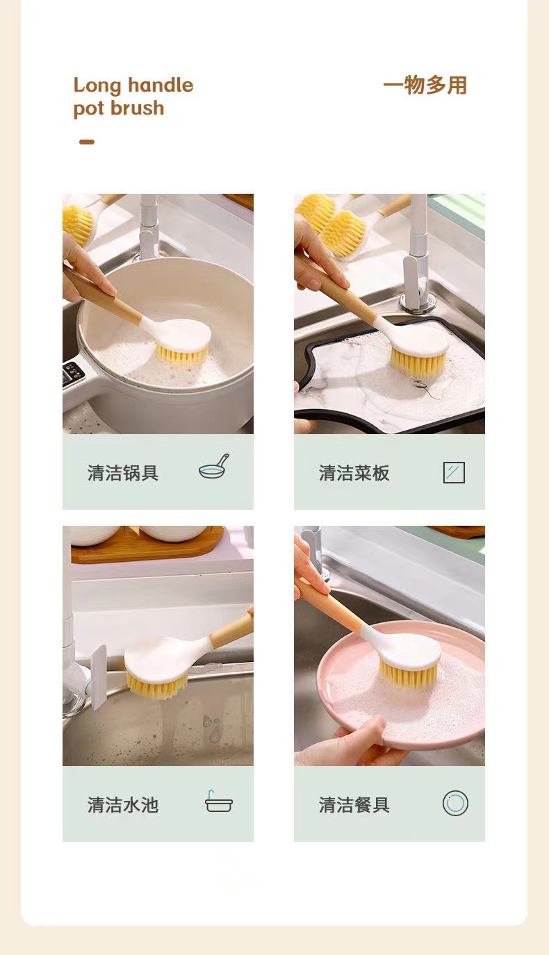 Пластиковая ручка горшок щетка Бытовая длинная ручка Чистящая щетка горшок деревянная ручка кухонная щетка для очистки масла оптом