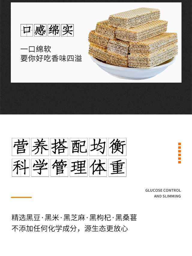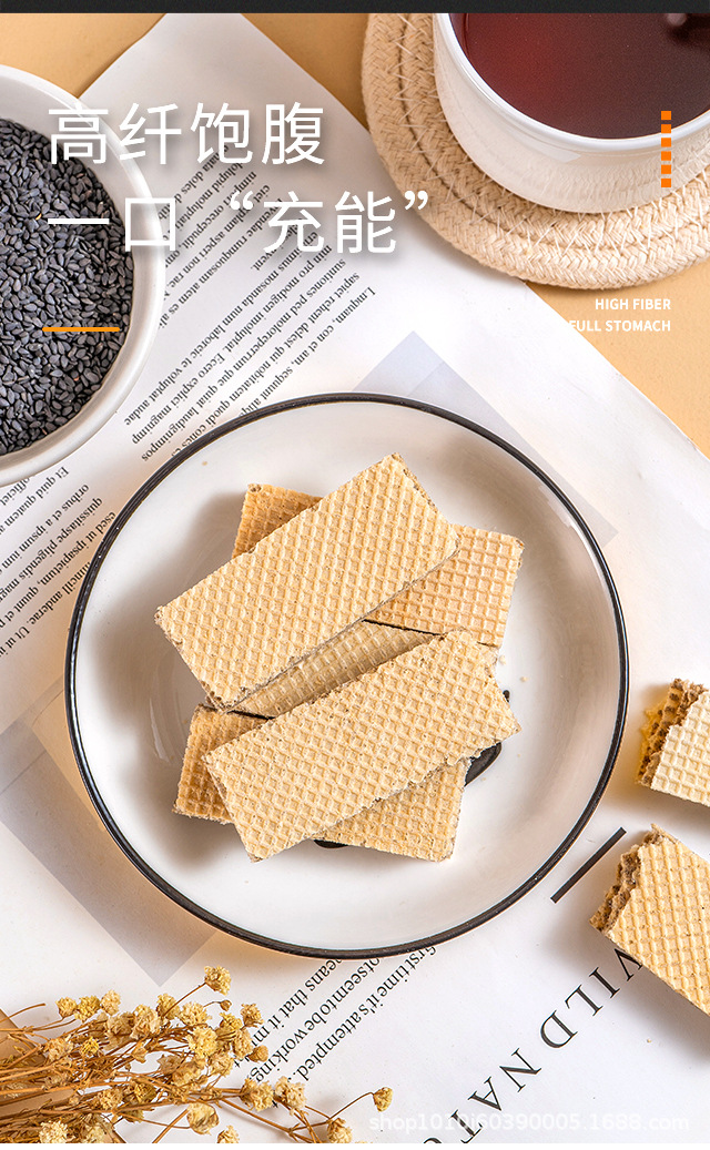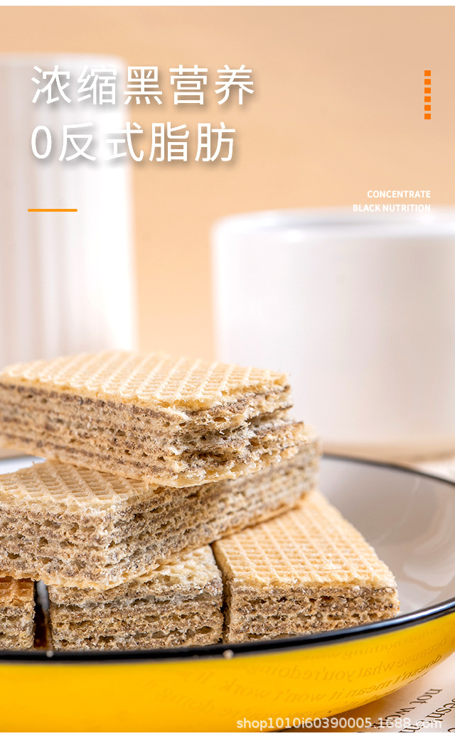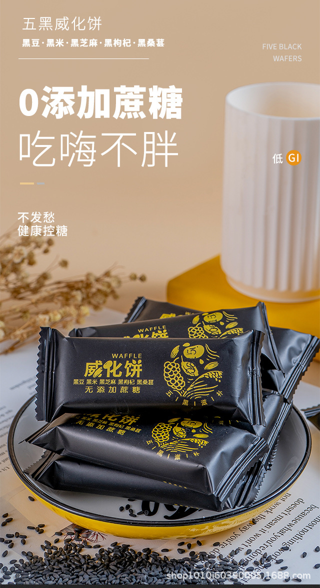 Пять черных вафельных батончиков из цельнозерновой муки, протеиновые батончики без сахара с черным кунжутом и соевым молоком, заменители питания, готовые к употреблению хрустящие закуски.