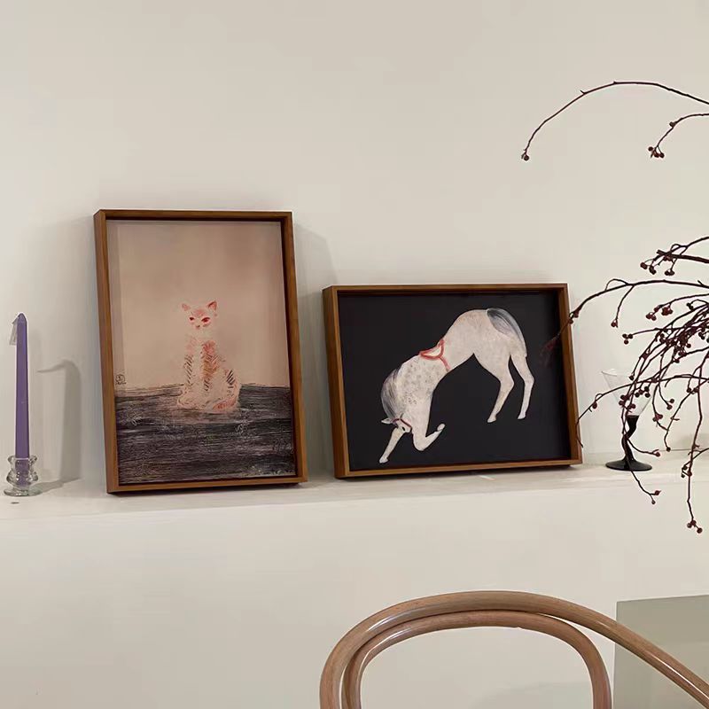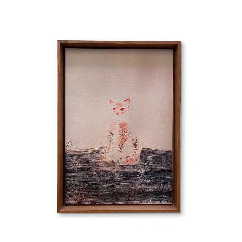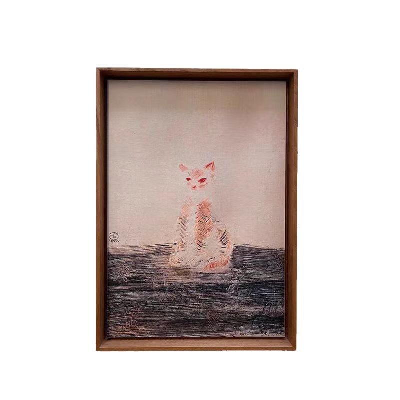 Кошка забавная декоративная живопись диван фон декоративная живопись твердая древесина фоторамка подвесная картина