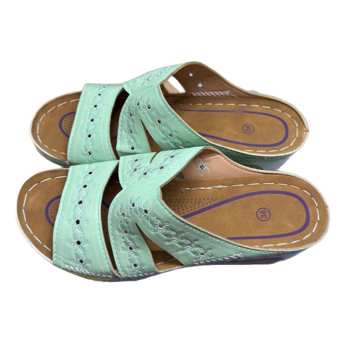 Босоножки трансграничного размера 43, женские босоножки на танкетке, толстая подошва с рыбьим ртом, экспортная обувь большого размера, разноцветные дополнительные босоножки с вышивкой для женщин в наличии