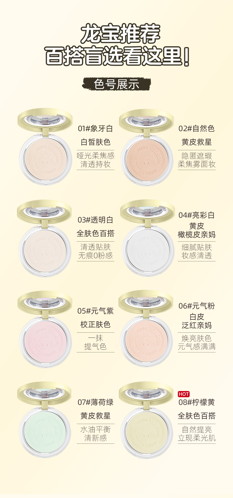 DHDL-Матовый тюль для макияжа порошок-Год дракона ограничен 01 # слоновая кость; DHDL-Матовый тюль для макияжа порошок-Год дракона ограничен 02 # натуральный цвет; DHDL-Матовый тюль для макияжа порошок-Год дракона ограничен 03 # понимание; DHDL-Матовый тюль для макияжа порошок-Год дракона ограничен 04 # Яркий белый; DHDL-Матовый тюль для макияжа порошок-Год дракона ограничен 05 #; DHDL-Матовый тюль для макияжа порошок-Год дракона ограничен 06 # порошок жизненная ци; DHDL-Матовый тюль для макияжа порошок-Год дракона ограничен 7 # мятный зеленый; DHDL-Матовый тюль для макияжа порошок-Год дракона лимитный 08 # лимонно-желтый