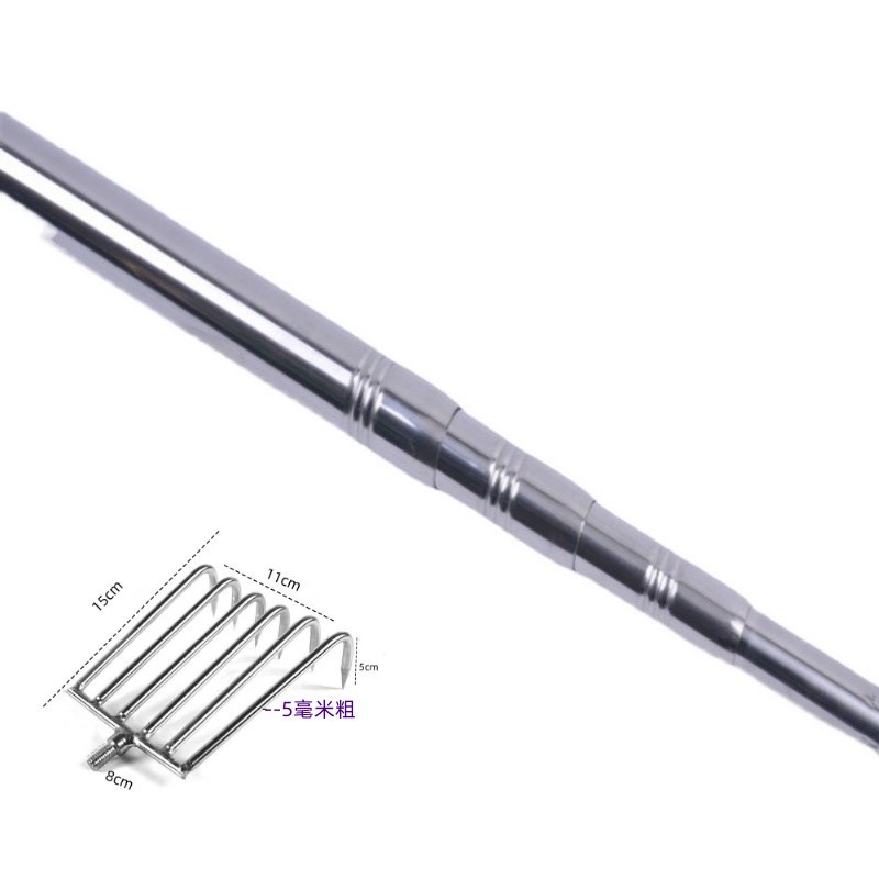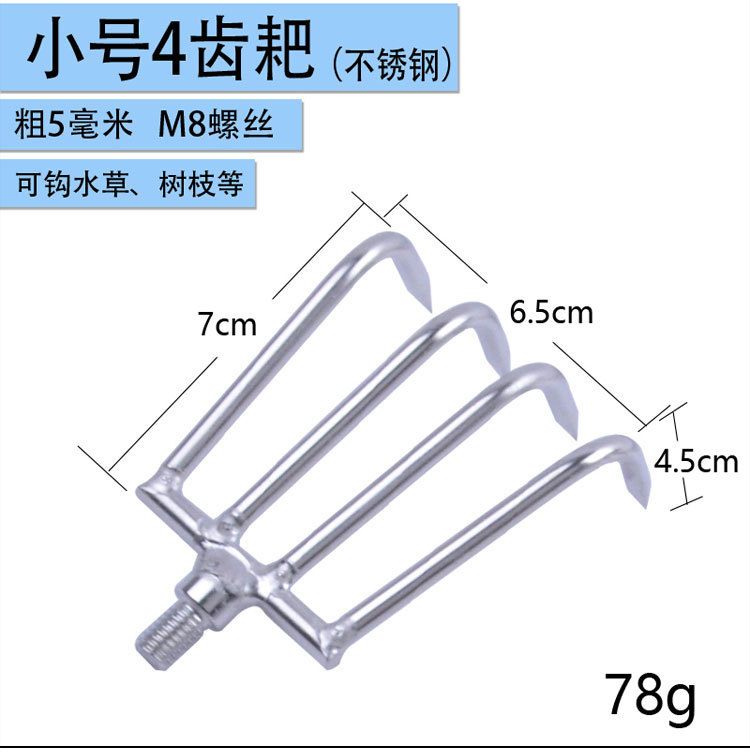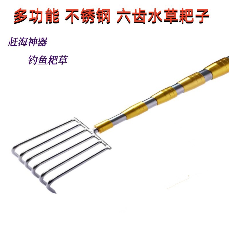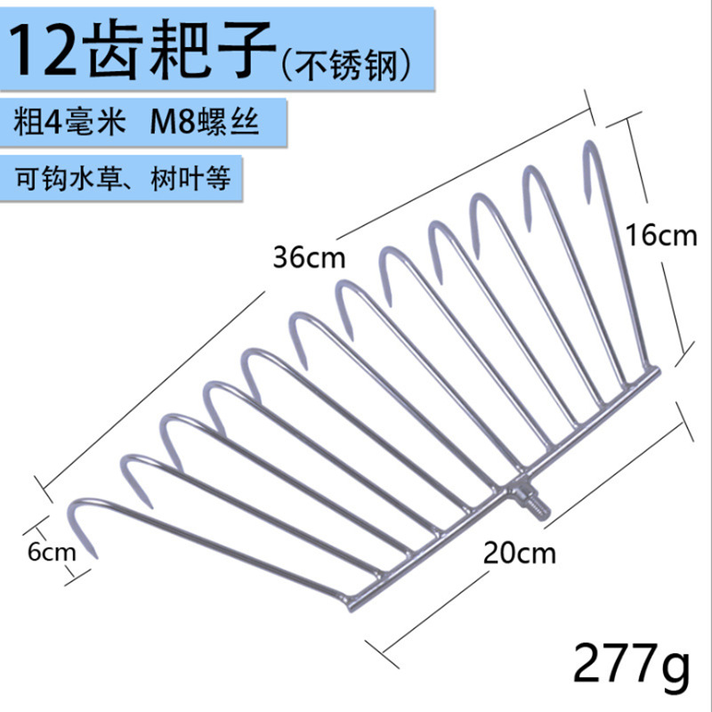 钓鱼清理水草耙子搂草8齿12齿赶海耙子不锈钢伸缩杆耙子头抄网杆