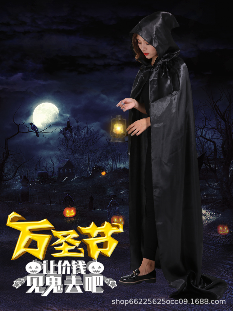 Плащ на Хэллоуин, косплей для взрослых и детей, черный средневековый мужской плащ-волшебник, шляпа монаха смерти, выступление