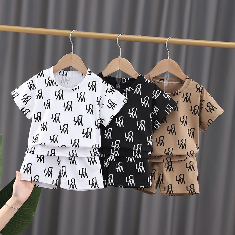 Детский костюм для мальчиков и девочек 2024, Летний новый корейский стиль, костюм с принтом в западном стиле для мальчиков, комплект из двух предметов для детей