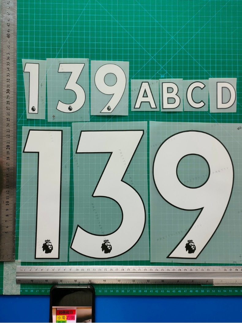 Термотрансферная печать номеров и букв для футболок Премьер-лиги (размеры для взрослых), белая, класс A+