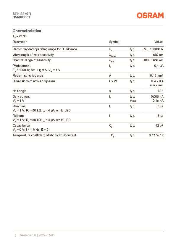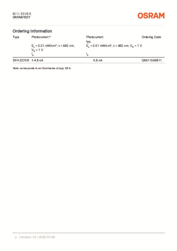 Оригинальный подлинный osram OSRAM SFH 2270R Высокоточный датчик света окружающей среды фотодетектор