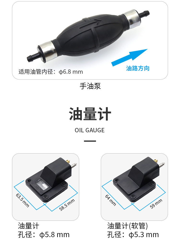 Внешний топливный бак на 12 литров; 24-литровый внешний топливный бак; Внешний топливный бак 12 литров + масляная трубка; 24-литровый внешний топливный бак + масляная трубка; Внешний топливный бак объемом 12 литров + двухслойная масляная трубка; Внешний топливный бак 24 литра + двухслойная масляная труба; Внешняя масляная труба; Двухслойная масляная труба; Масляная труба высокой мощности; Разъем типа «папа» клеммы машины; Гнездовой разъем на конце машины; Гнездовой разъем на конце топливного бака; ручной масляный насос; Внешняя крышка топливного бака; Измеритель масла; Измеритель объема масла (шланг); Фильтр топливного бака; Автомобильный 5-литровый масляный барабан; Автомобильный 10-литровый масляный барабан; Автомобильный 20-литровый масляный барабан; Автомобильный масляный барабан 30л; Автомобильный 5-литровый черный масляный барабан; Автомобильный 10-литровый черный масляный барабан; Автомобильный 20-литровый черный масляный барабан; Автомобильный 30-литровый черный масляный барабан; Автомобильный 5-литровый навесной замок масляного барабана; Автомобильный замок для масляного барабана 10л/20л; Автомобильный замок для масляного барабана 30 л