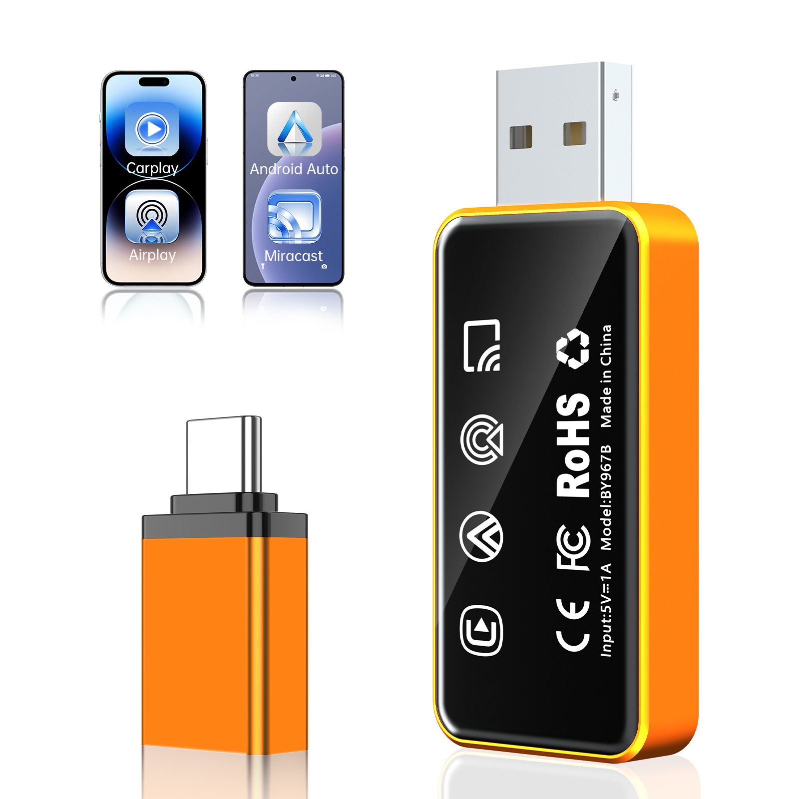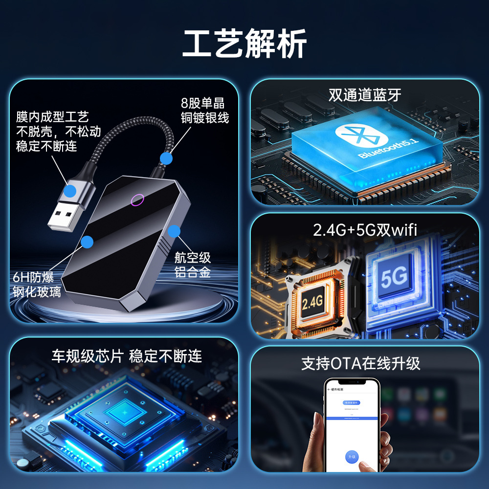 0.7 Блок преобразования соединения автомобиля и машины, подключенный к беспроводному адаптеру Carplay