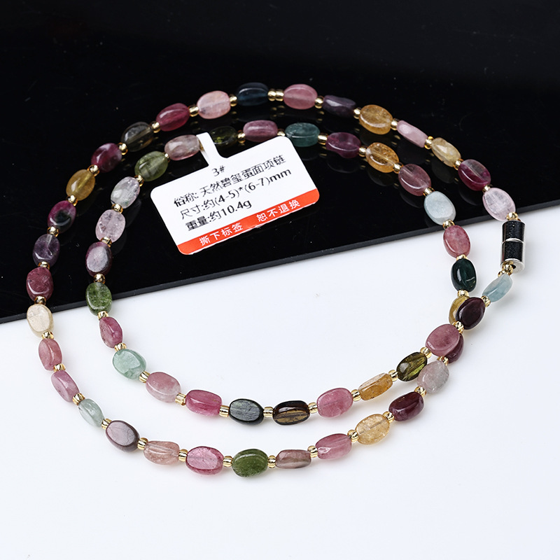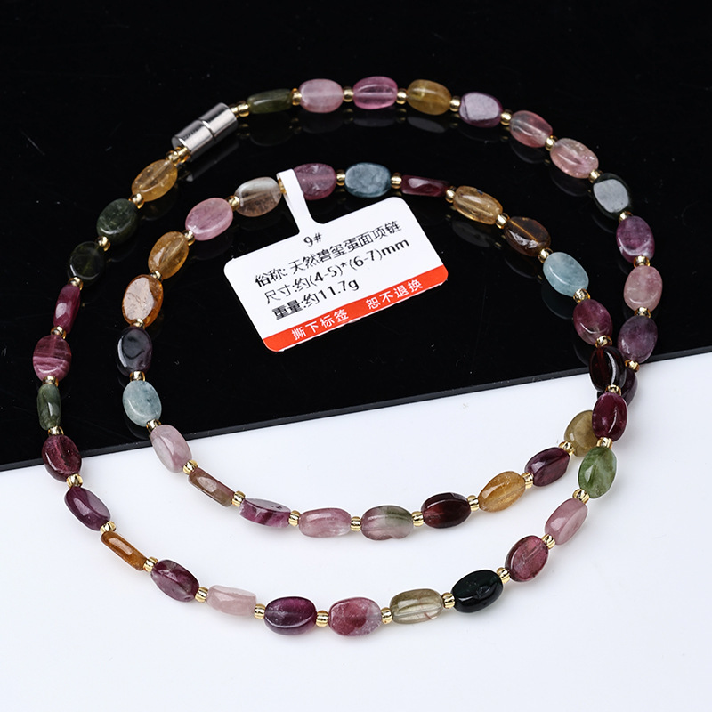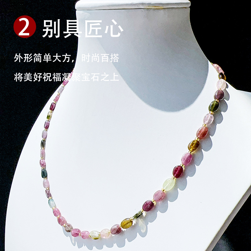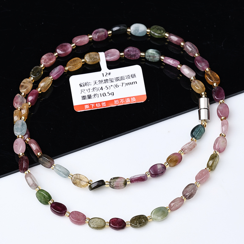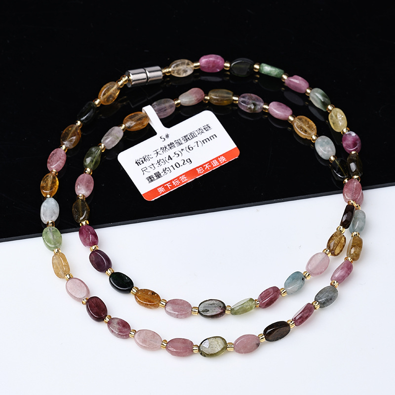 Натуральное разноцветное ожерелье из турмалина для женщин, цепочка на ключицы, радужный подарок, новый весенне-летний стиль, легкая роскошь, один товар, одна фотография.
