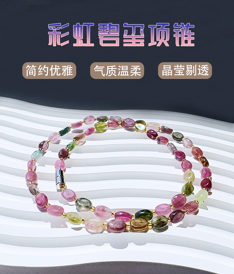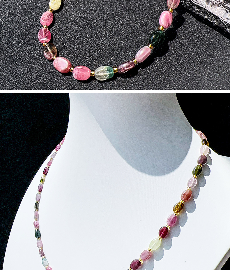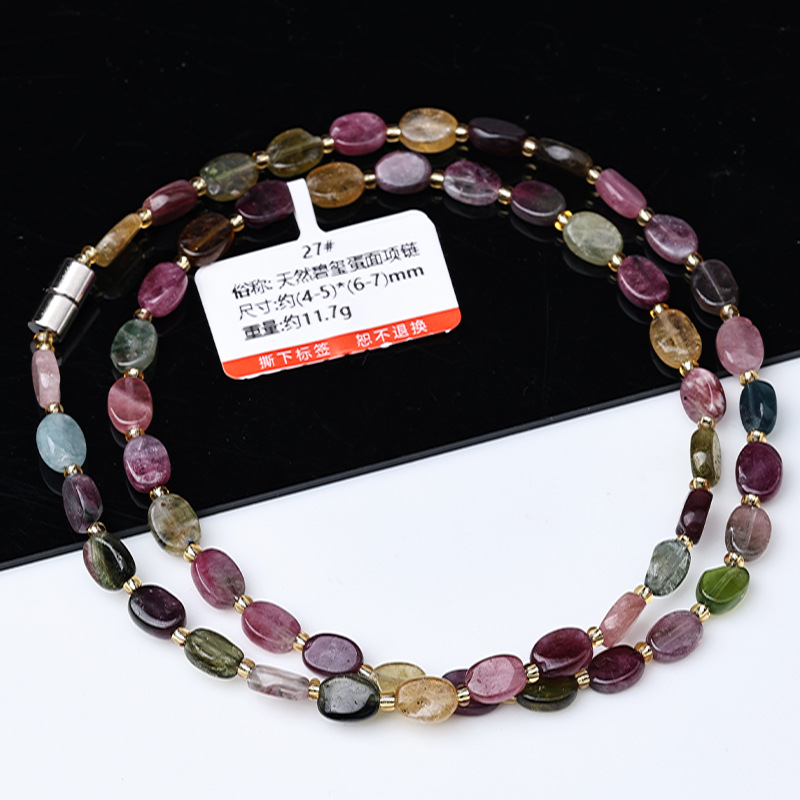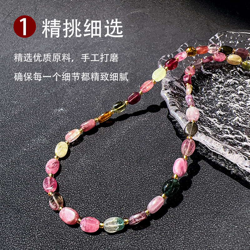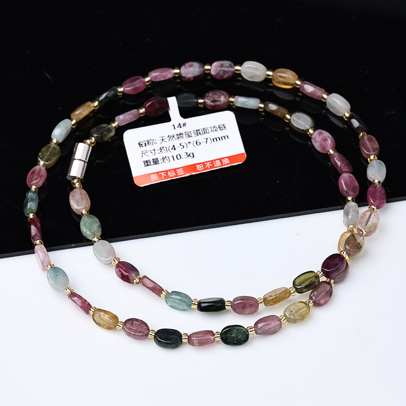 Натуральное разноцветное ожерелье из турмалина для женщин, цепочка на ключицы, радужный подарок, новый весенне-летний стиль, легкая роскошь, один товар, одна фотография.
