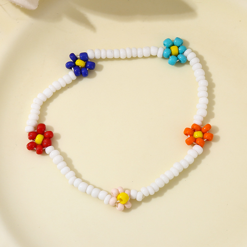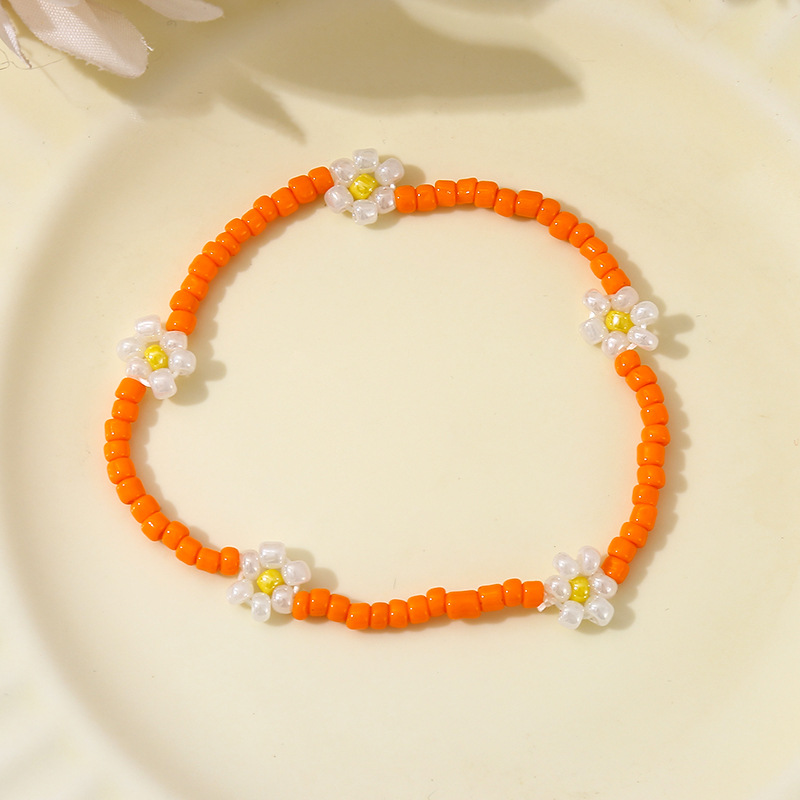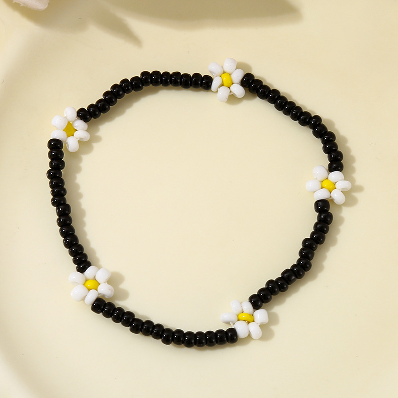 Браслет из рисовых бусин, браслет с цветком, инс-стиль, индивидуальный европейский и американский ретро-эластичный браслет из бисера с ромашками, универсальный браслет