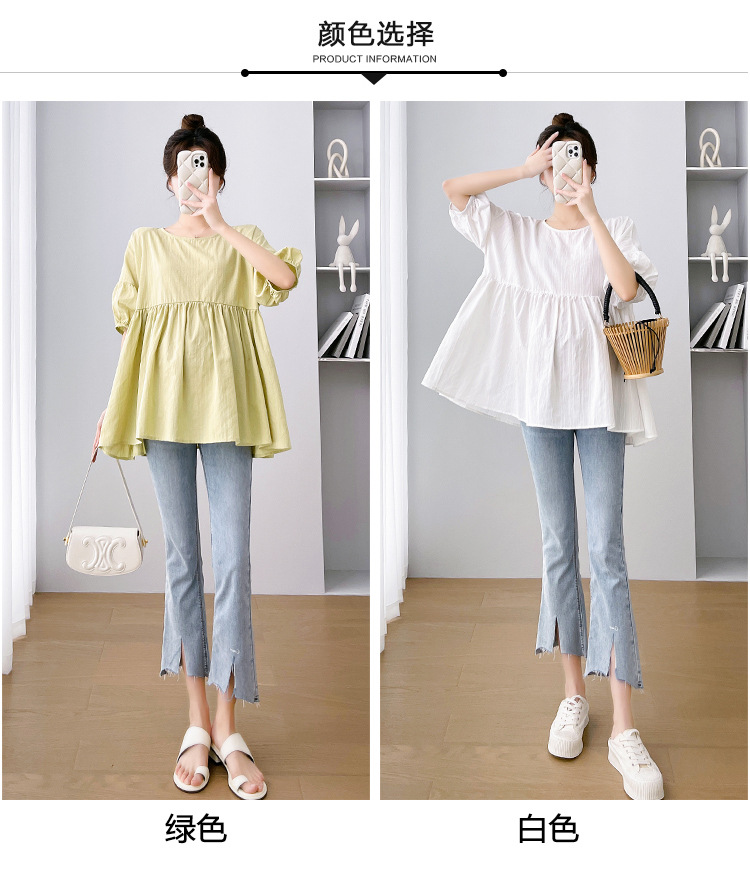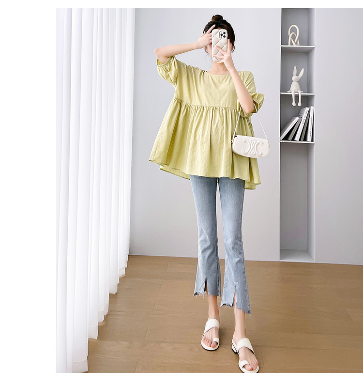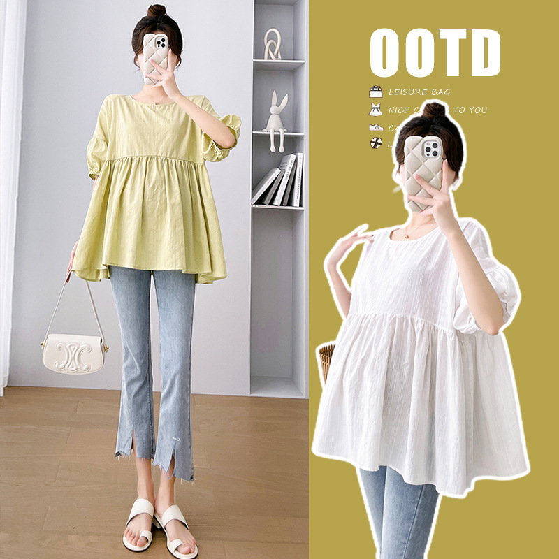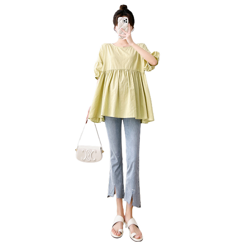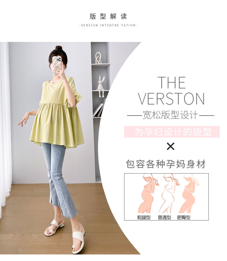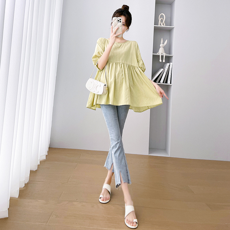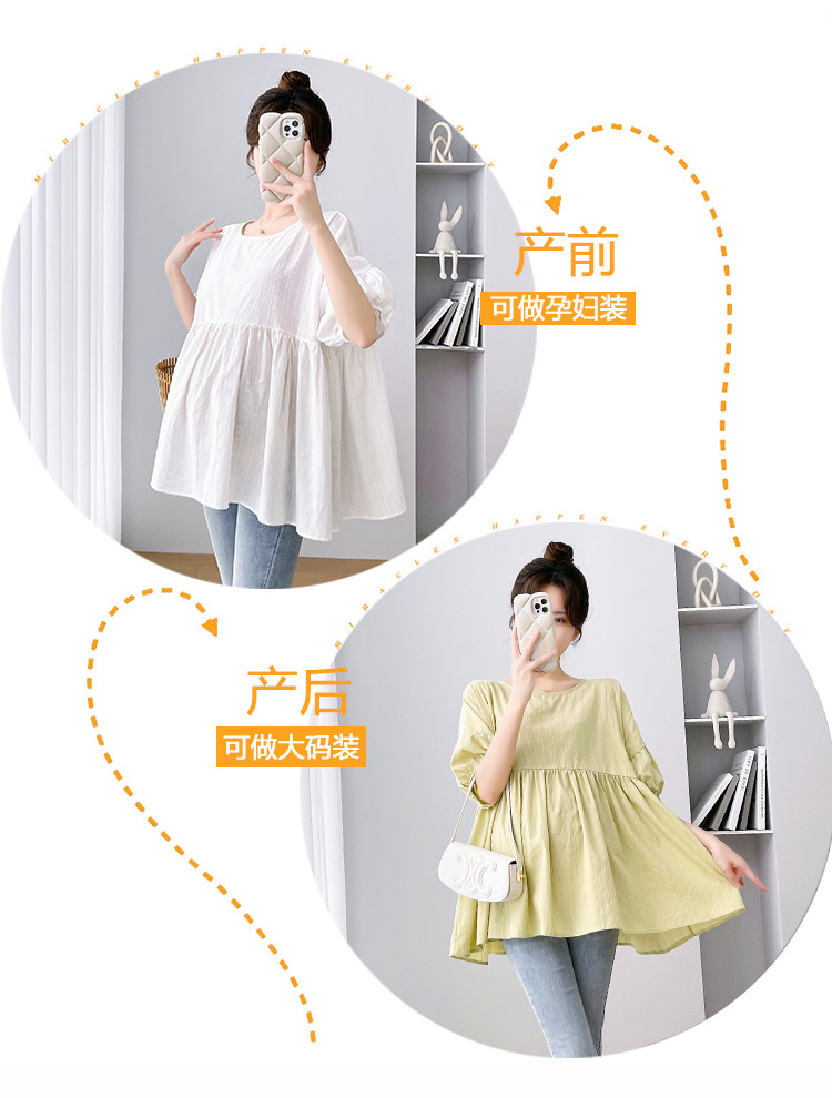 Одежда для беременных 2026: новая летняя коллекция в корейском стиле, свободный топ для беременных и кормящих мам из хлопка и льна с коротким рукавом