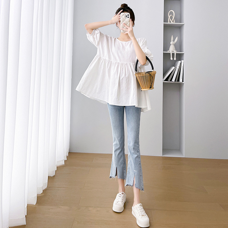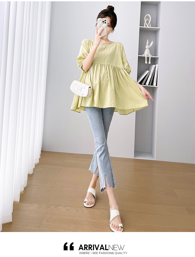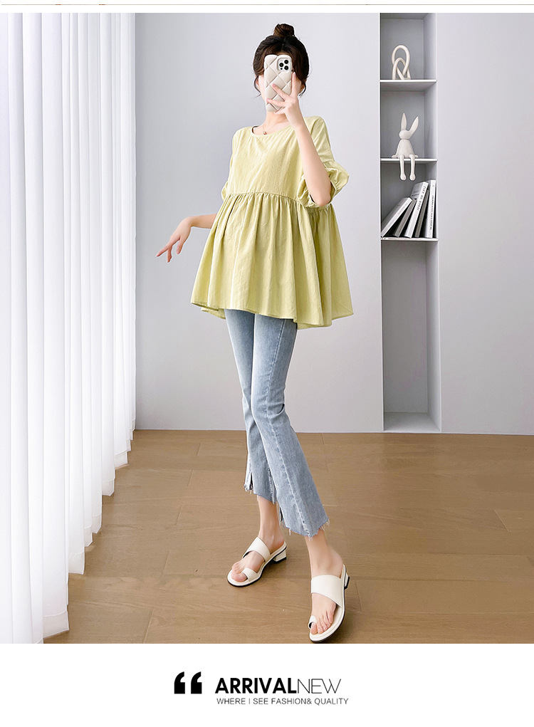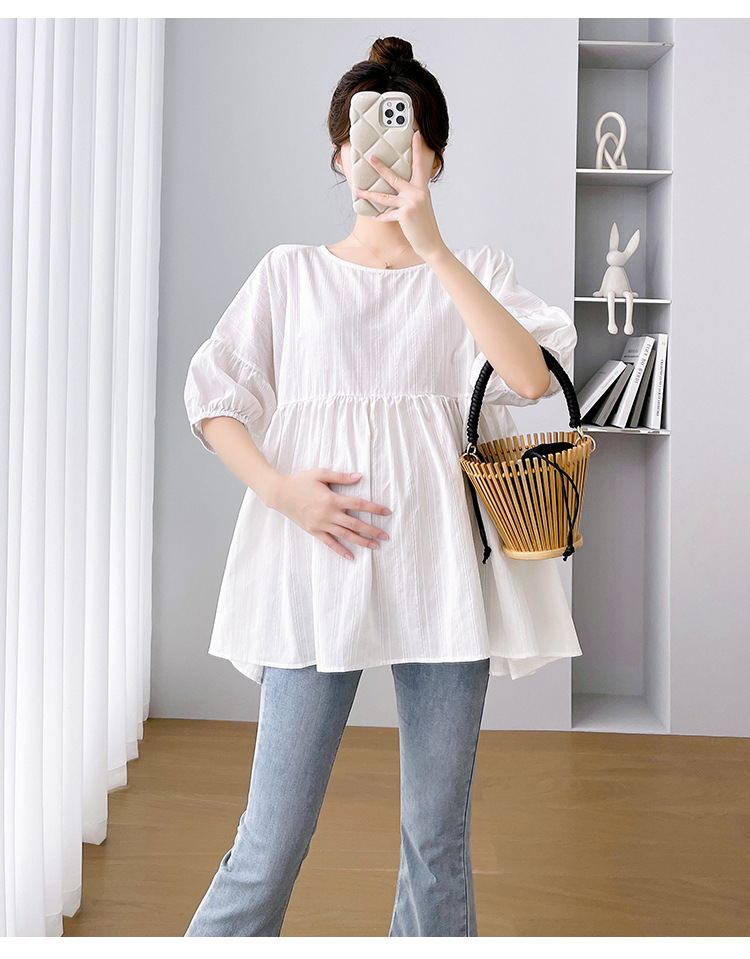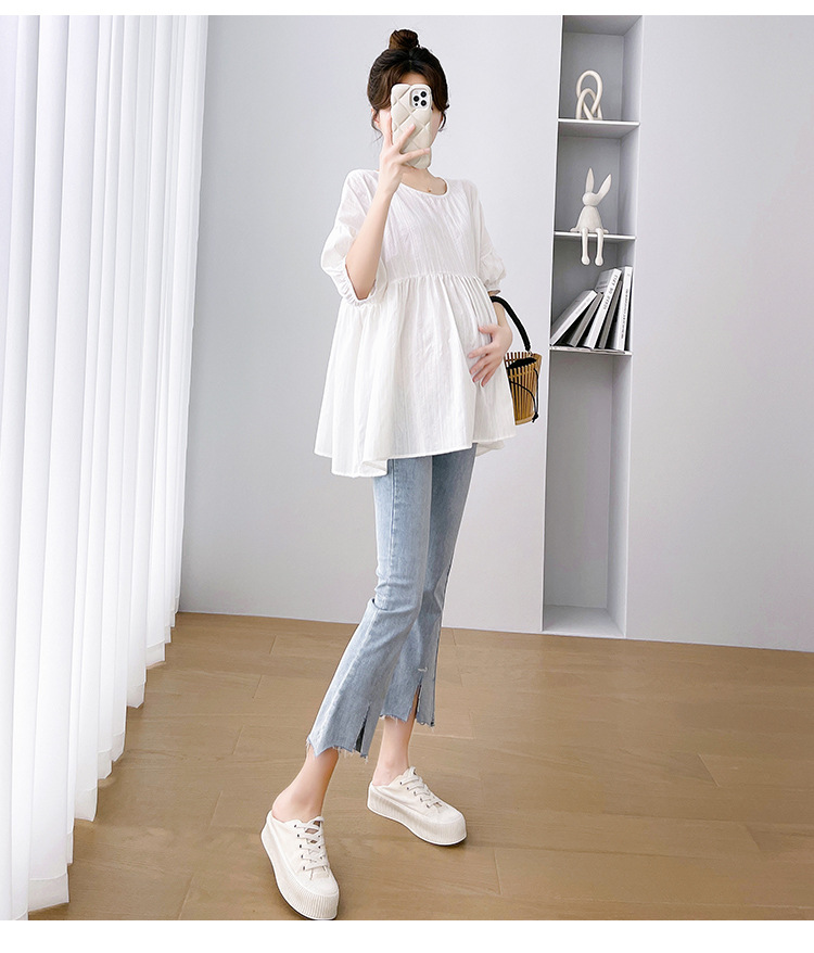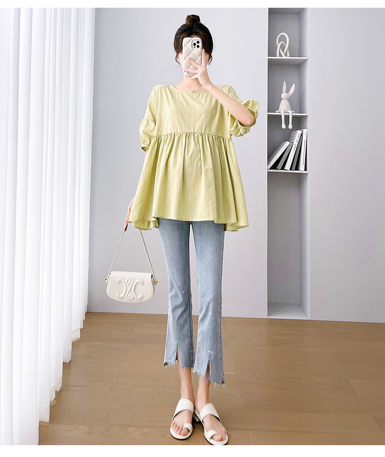 Одежда для беременных 2026: новая летняя коллекция в корейском стиле, свободный топ для беременных и кормящих мам из хлопка и льна с коротким рукавом