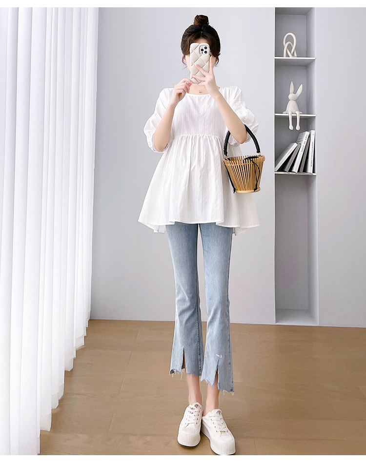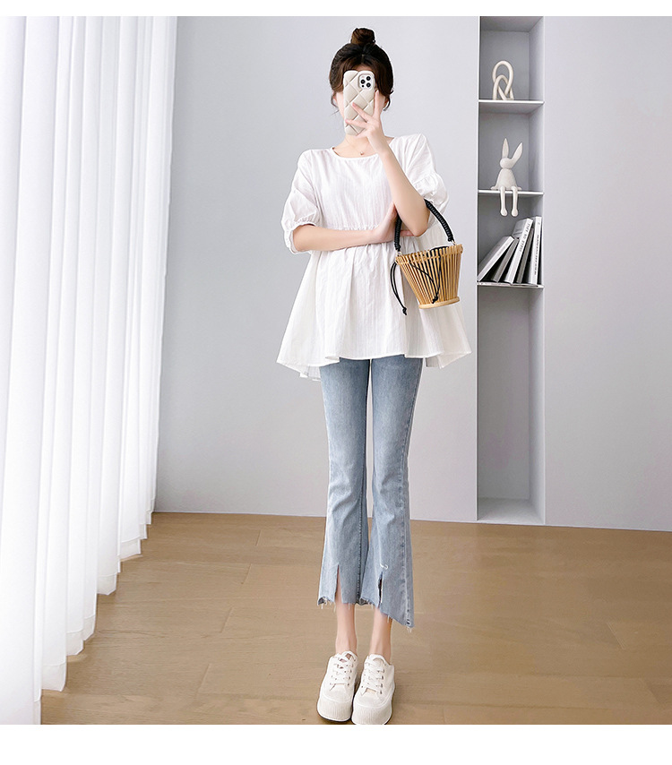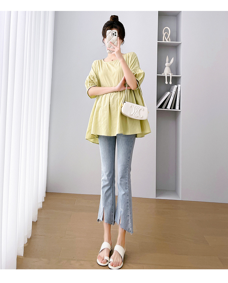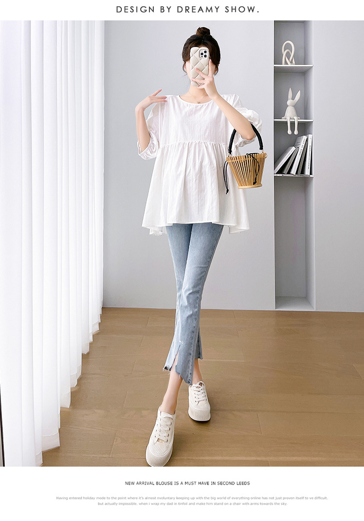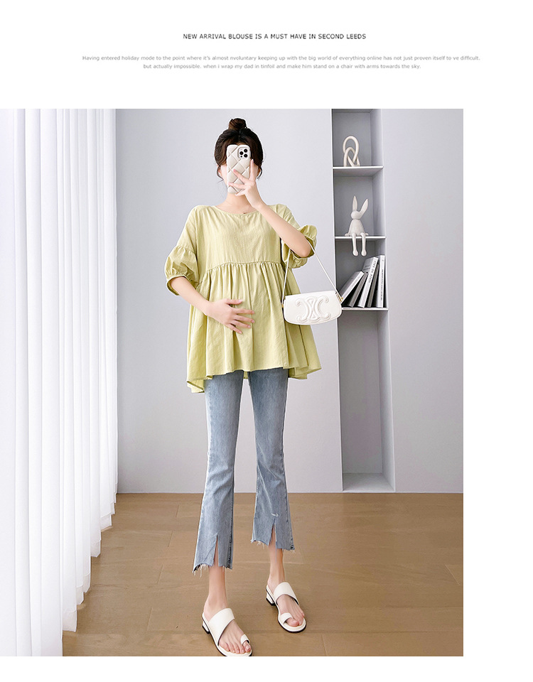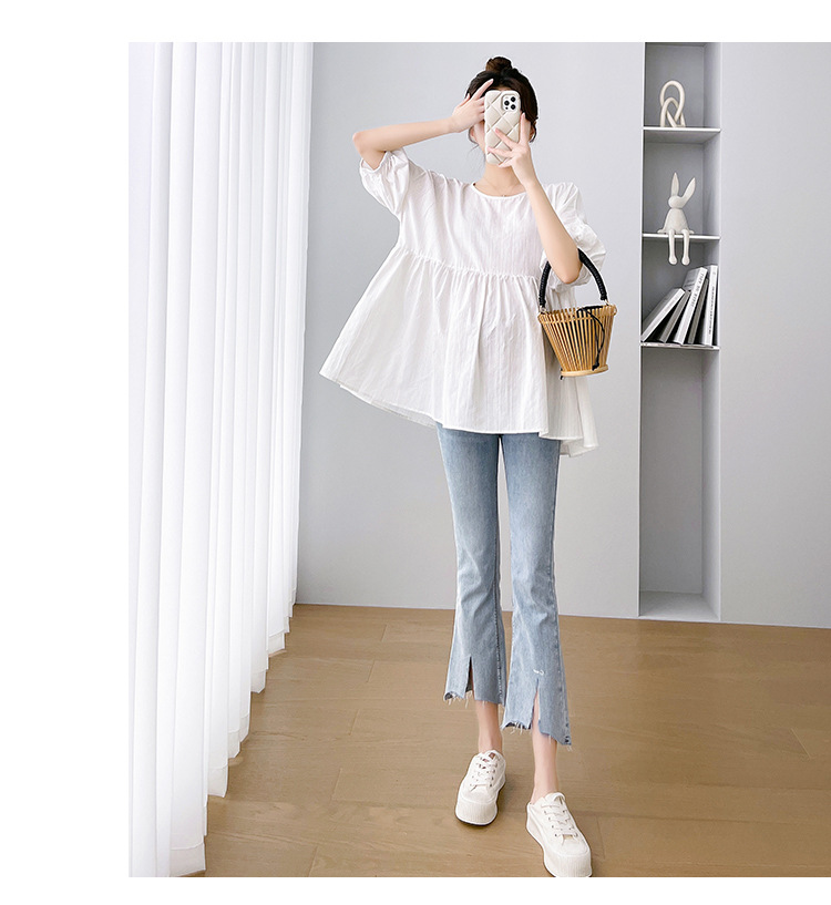Одежда для беременных 2026: новая летняя коллекция в корейском стиле, свободный топ для беременных и кормящих мам из хлопка и льна с коротким рукавом