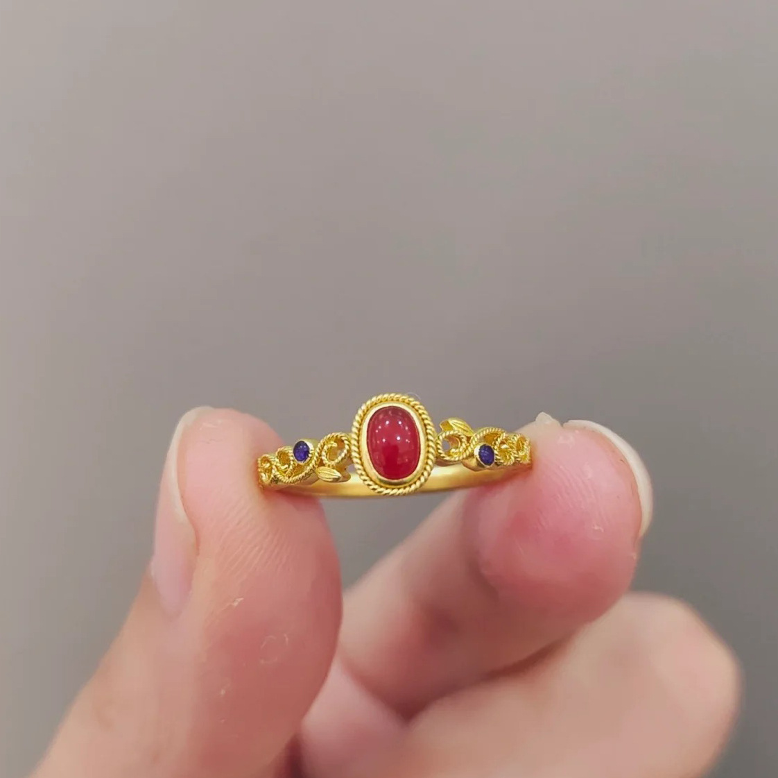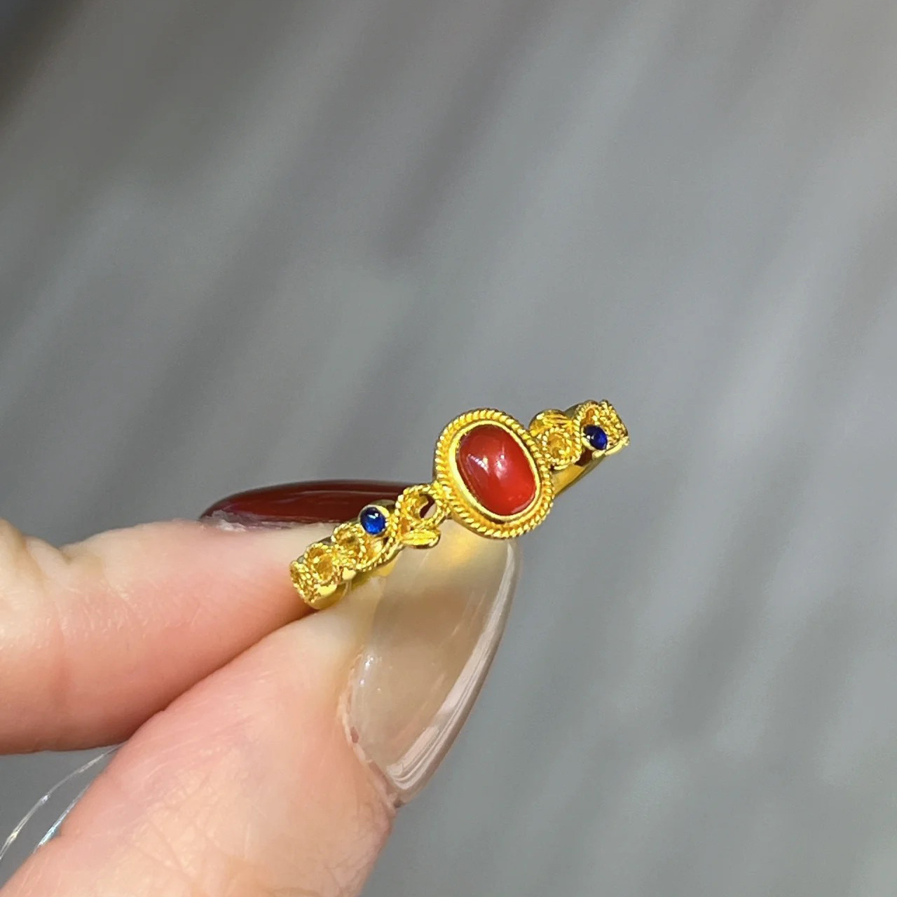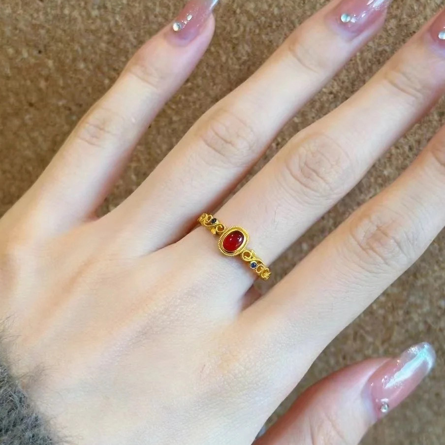 Новый стиль маленький дворец птица кольцо женский открытый придворный стиль имитация Красного халцедона высокого класса темперамент ретро китайский стиль маленькая красная книга в том же стиле