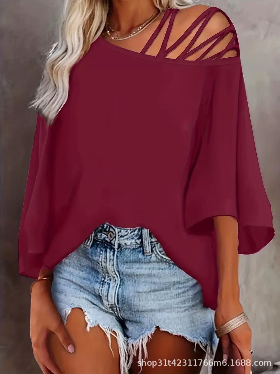 Новая оптовая продажа Amazon независимая станция весной и летом европейская и американская мода сшивание свободного скошивания повседневная футболка с принтом
