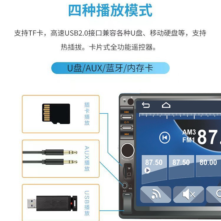 Автомобильный MP5-плеер 7018B 7inch с поддержкой CARPLAY, USB-слотом, Bluetooth и усилителем для грузовиков