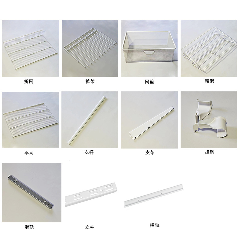 Колонка 12*25*15 мм толщиной 2,0 длиной 1,5 м; Столбец длиной 2 м толщиной 15*25*15 мм2.0; 15*25*15 мм2.0 Толстая Колонка длиной 2,4 м; Поперечная рейка толщиной 0,52 м * 2,5; Крест-рейка толщиной 0,62 м * 2,5; Поперечная рейка толщиной 0,82 м * 2,5; Крест-рейка толщиной 1,02 м * 2,5; Крест-рейка толщиной 1,24 м * 2,5; Поперечная рейка толщиной 1,44 м * 2,5; Поперечная рейка толщиной 1,64 м * 2,5; Поперечная рейка толщиной 1,80 м * 2,5; Перекрестная рейка толщиной 2,0 м * 2,5; Самолет чистый 50,5 см; Плоская сетка 60,5 см; Самолет чистый 80,5 см; Плоская сетка 100,5 см; L-образная сетка 60,5 см; L-образная сетка 80,5 см; L-образная сетка 100,5 см; Кронштейн; Кронштейн отверстия; Трубный крюк; Вешалка для одежды штанга 25 мм Толстая 51 см; Стержень для одежды 25 мм толщиной 61 см; Вешалка для одежды штанга 25 мм Толстая 81 см; Вешалка для одежды штанга 25 мм Толстая 101 см; Стержень для одежды 25 мм толщиной 121 см; Вешалка для одежды штанга 25 мм Толстая 141 см; Стержень для одежды 25 мм толщиной 161 см; Чистая корзина; Брюки Вешалка; Чистка стойки
