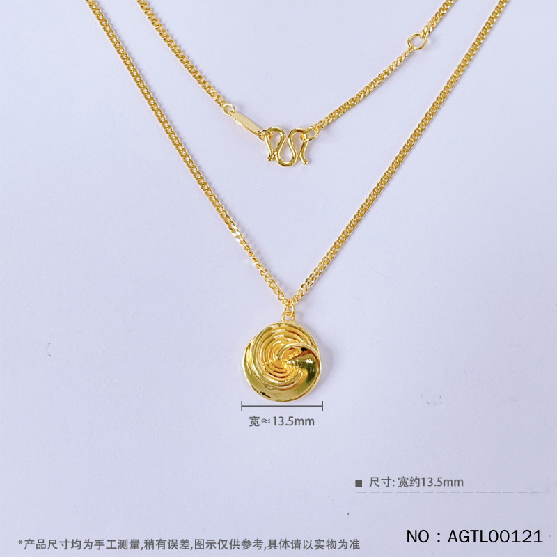 Чистое золото 999 [Оригинальная модель высокой точности] Модная спиральная круглая регулируемая цепочка с цветком 17-18inch