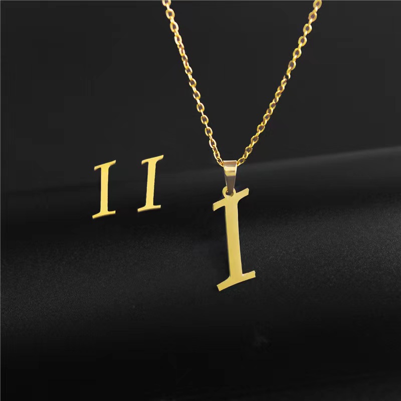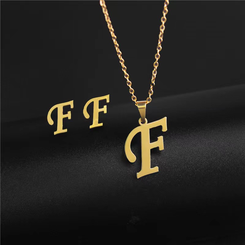 Нержавеющая сталь 26 букв кулон цепочка костюм европейские и американские новые серьги письмо ожерелье из двух частей набор аксессуаров оптом