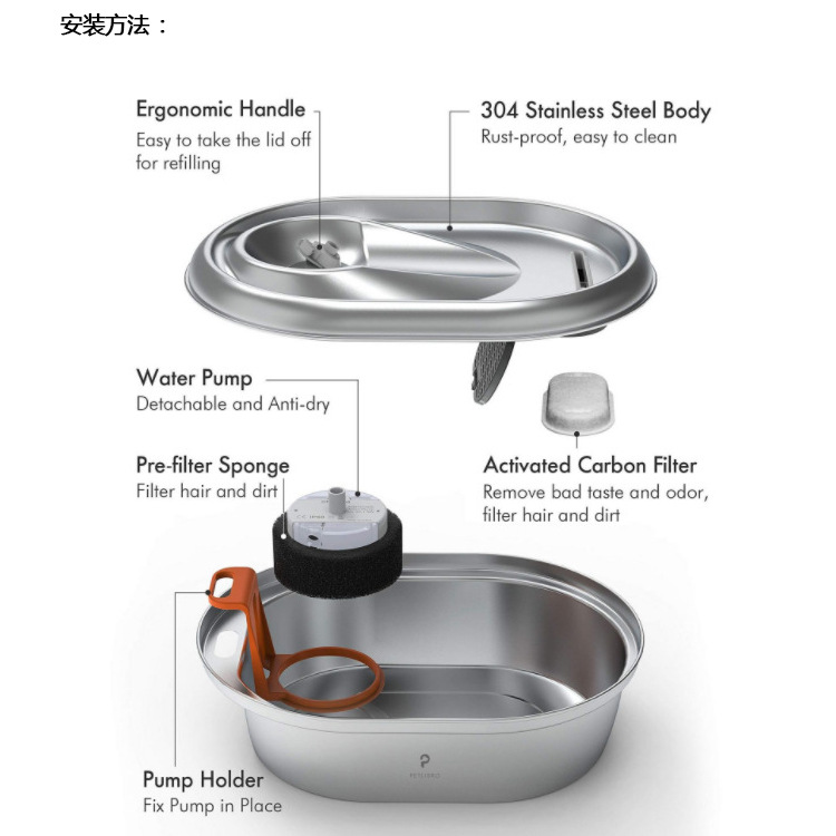 Взлетно-посадочная полоса фильтрующий элемент губчатая нержавеющая сталь питья для домашних животных фильтр внешней торговли Amazon