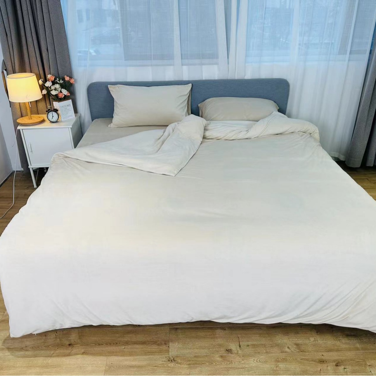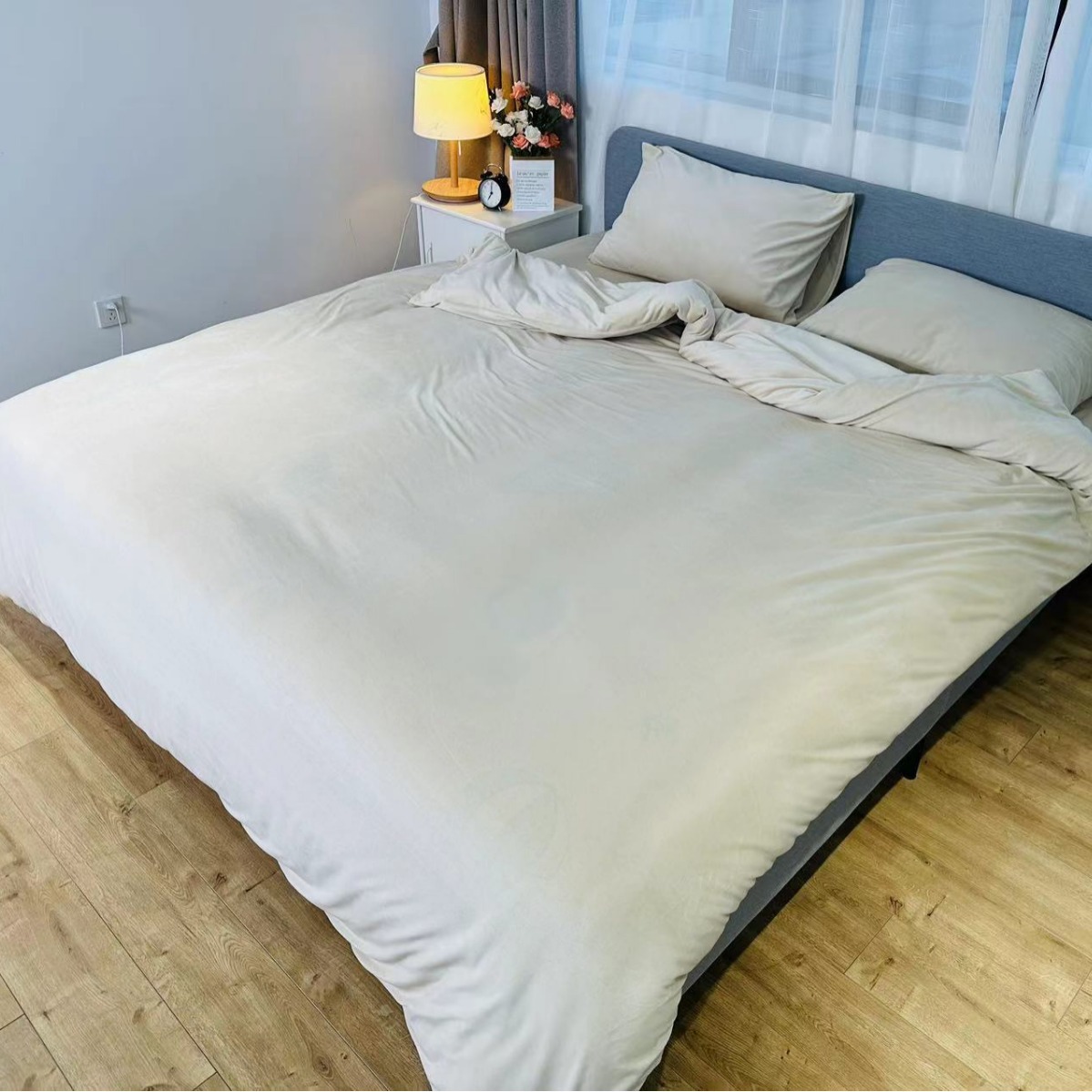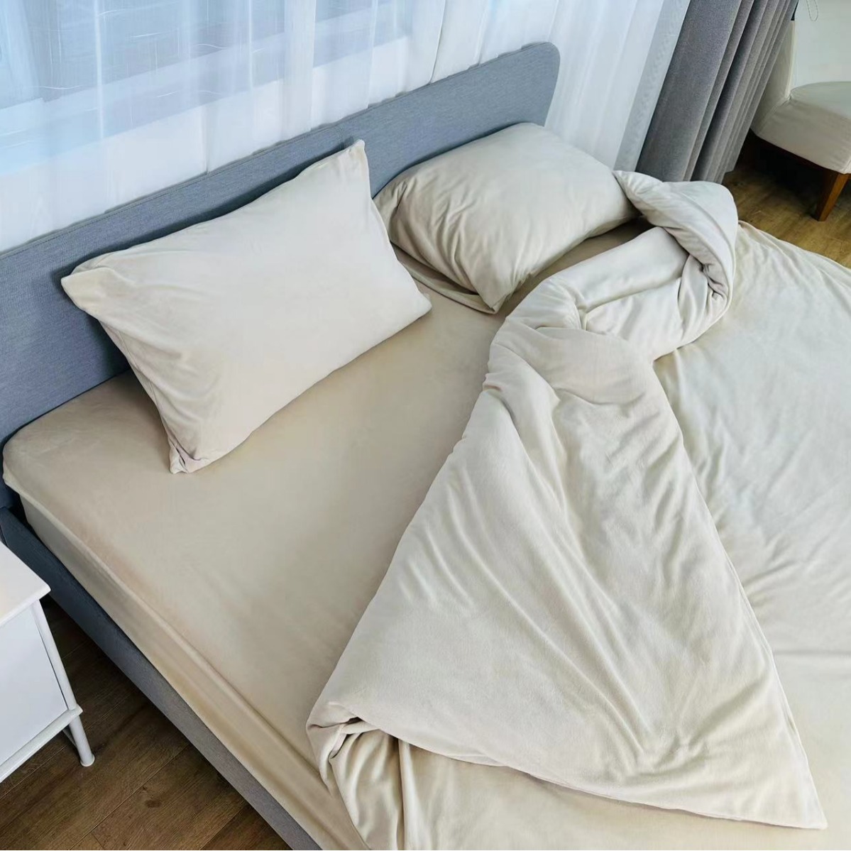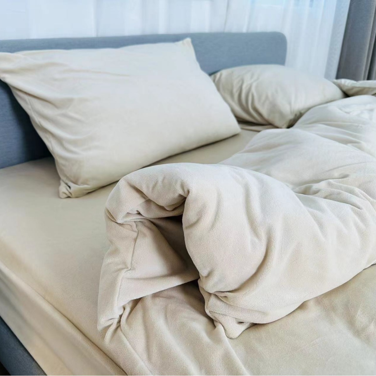 Комплект из четырех предметов: детское бархатное постельное белье с влагопоглощающими и теплогенерирующими свойствами, приятное для кожи, тонкое, мягкое, простое и подходящее для всех сезонов.