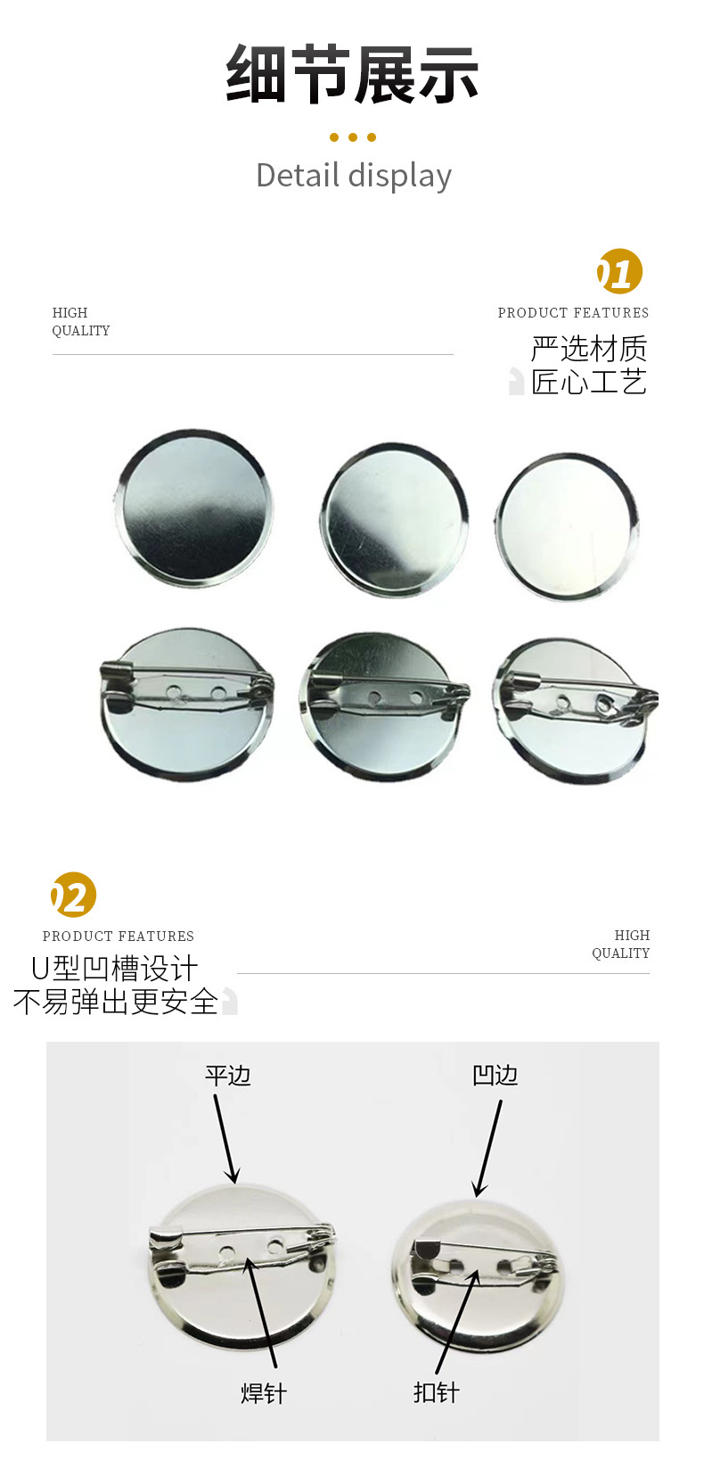 13 мм дисковый штифт; Штырь диска 19 мм; 24 мм дисковый штифт; Дисковый штифт 30 мм; 36-мм штифт для дисковой пряжки; Игла для дисковой сварки 20 мм; 25 мм дисковая сварочная игла; Игла для дисковой сварки 30 мм
