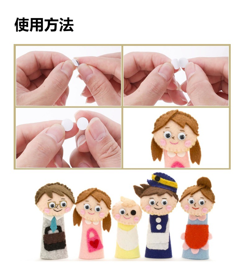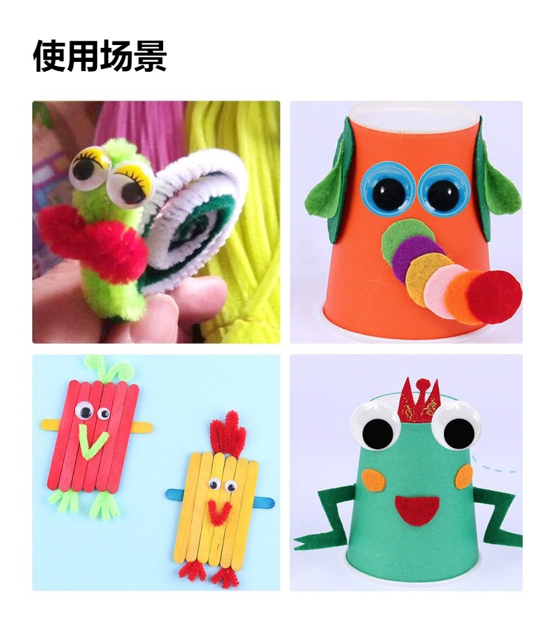 特点:无需胶水,背胶自粘;活动眼珠
