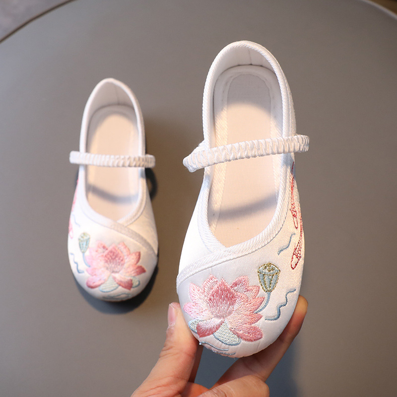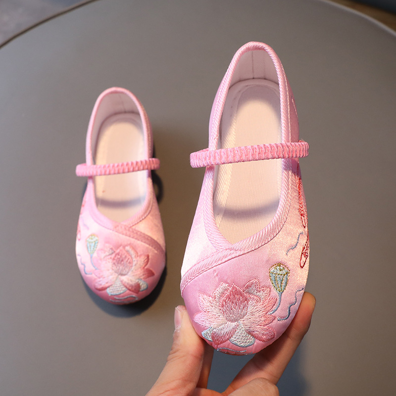 Обувь ханьфу для девочек, детская обувь с вышивкой в древнем стиле, обувь маленькой принцессы в китайском стиле, старинный костюм, старый Пекинский костюм Тан, Тканевая обувь, летняя