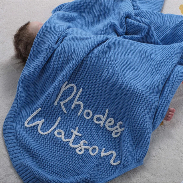 Детское одеяло с вышивкой имени, одеяло для коляски, одеяло, вязаное одеяло для сна по индивидуальному заказу