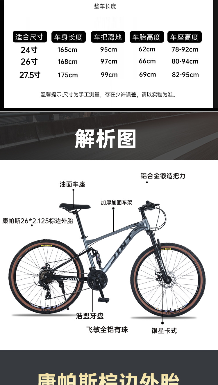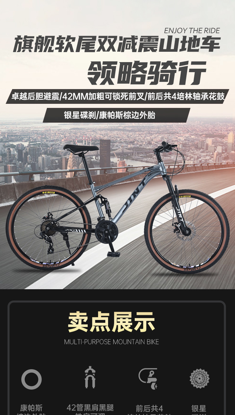 Оптовая продажа от производителя JINT, брендовый горный велосипед с мягким хвостом, велосипед для взрослых с двойной амортизацией, внедорожный велосипед с дисковым тормозом