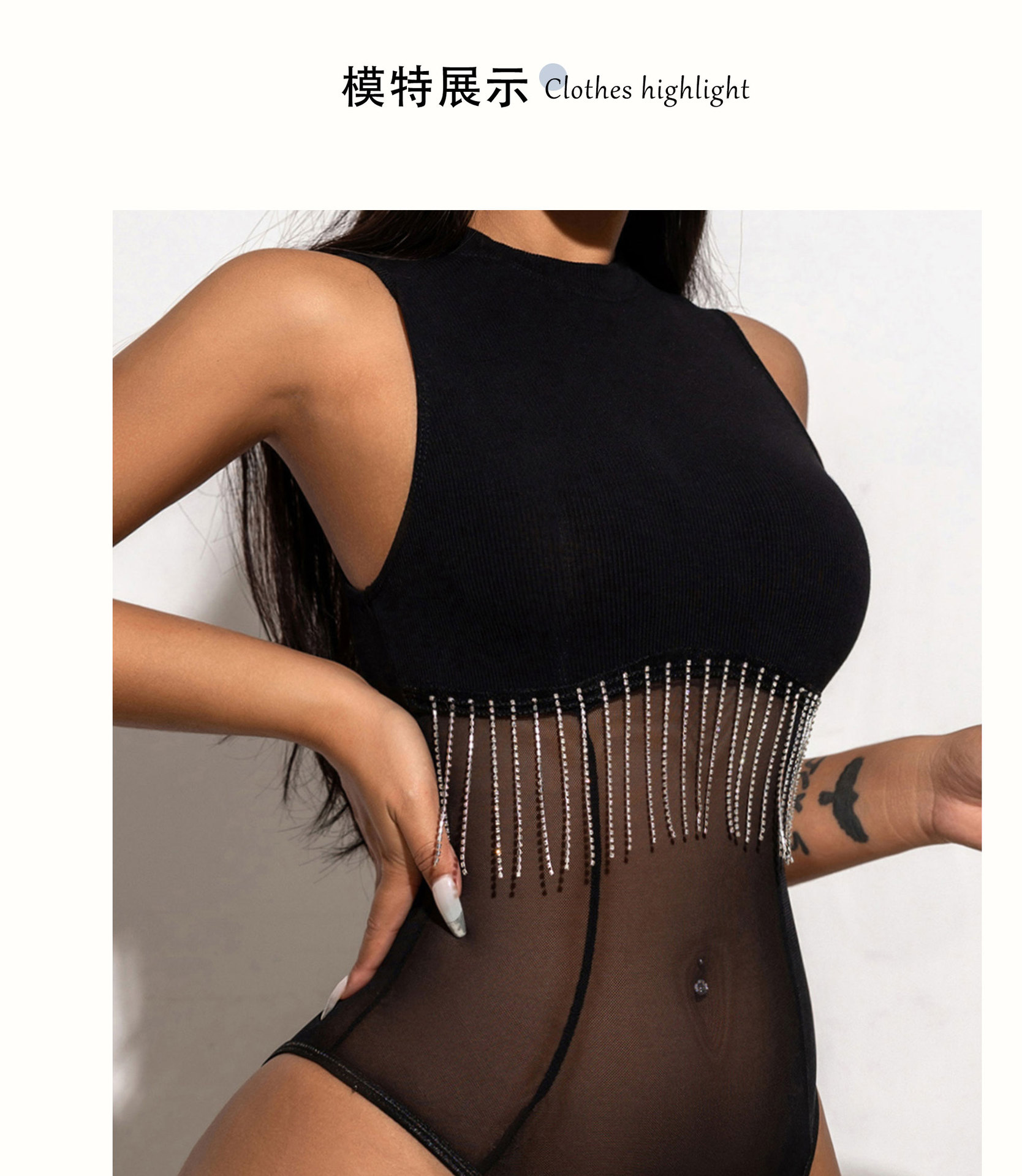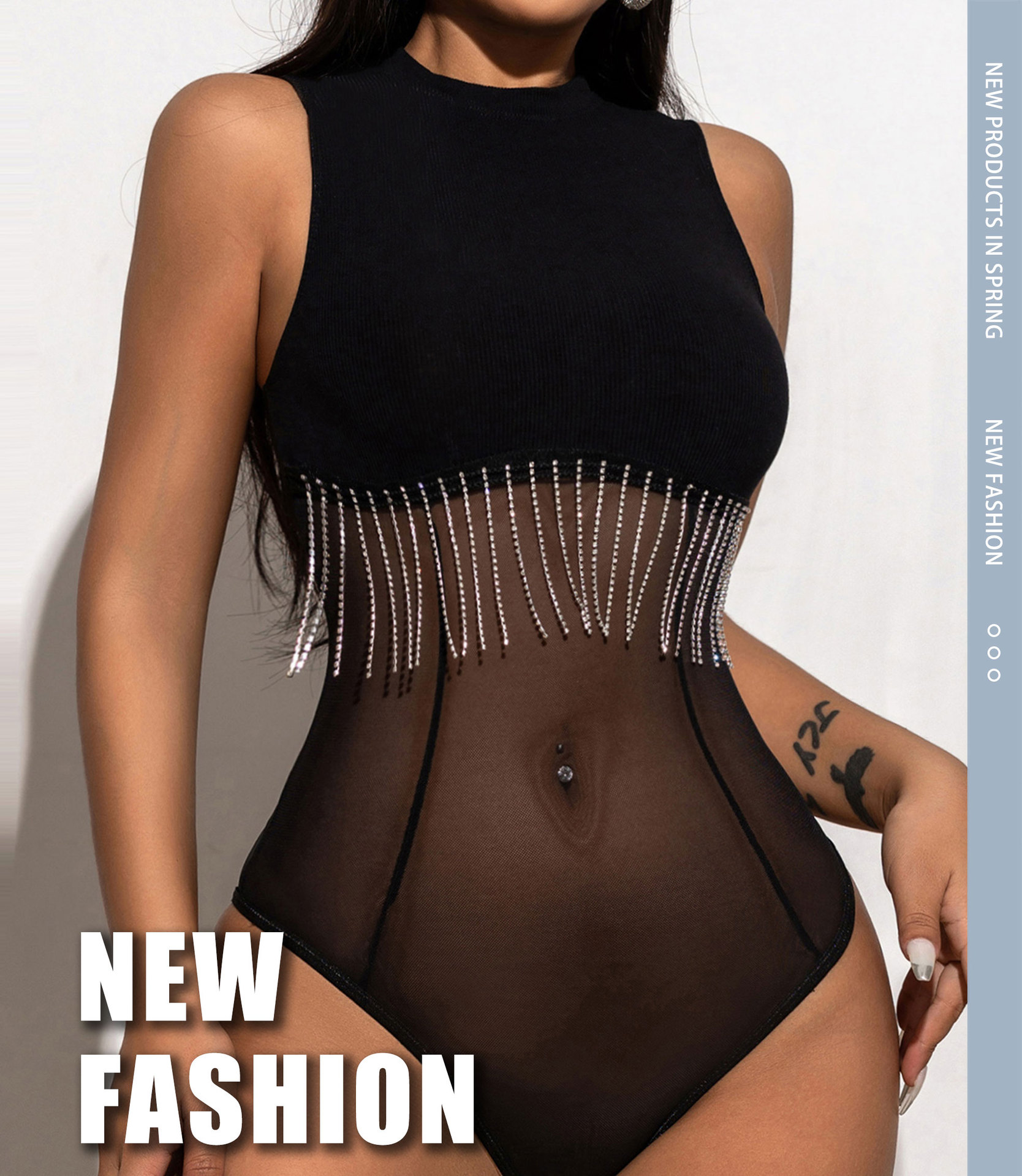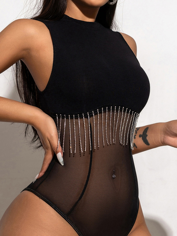 2024 лето новая европейская и американская горячая девушка сетчатая пряжа сшитый костюм с бриллиантами цепочка кисточки без рукавов обтягивание внутри жилет